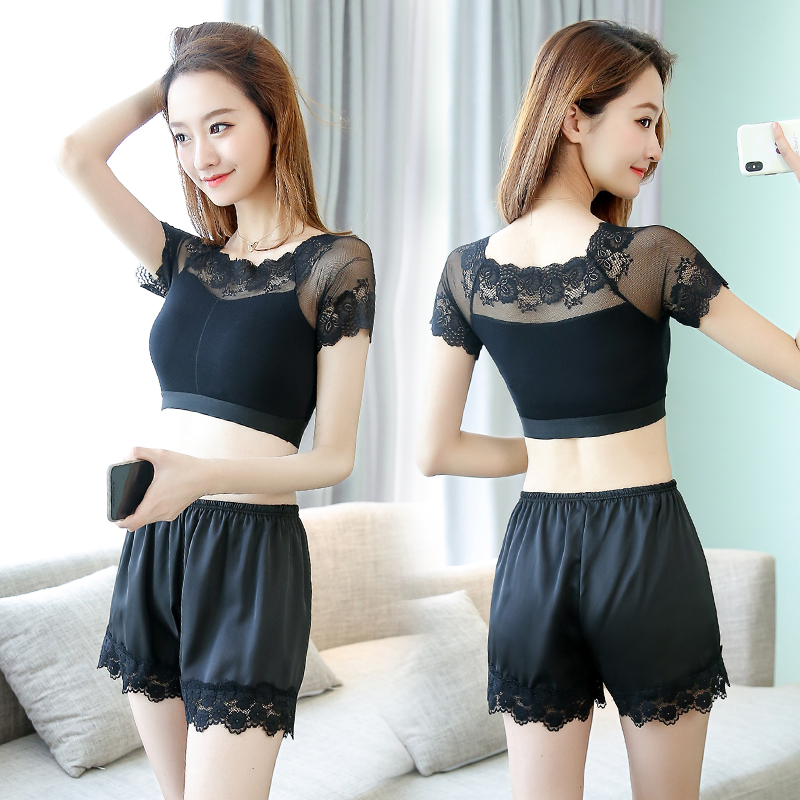 半截莫代尔打底衫蕾丝短袖黑色半身短款百搭内搭t恤罩衫夏女上衣
