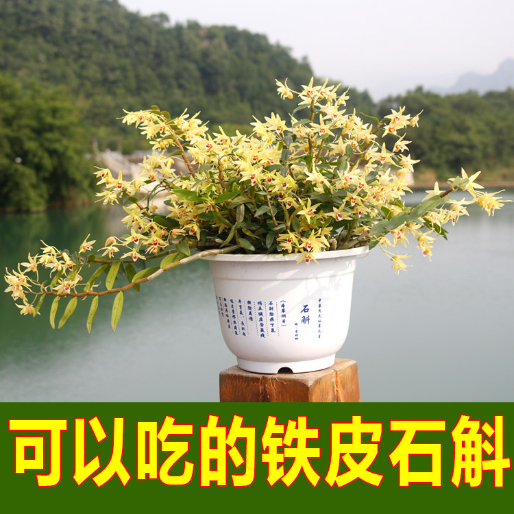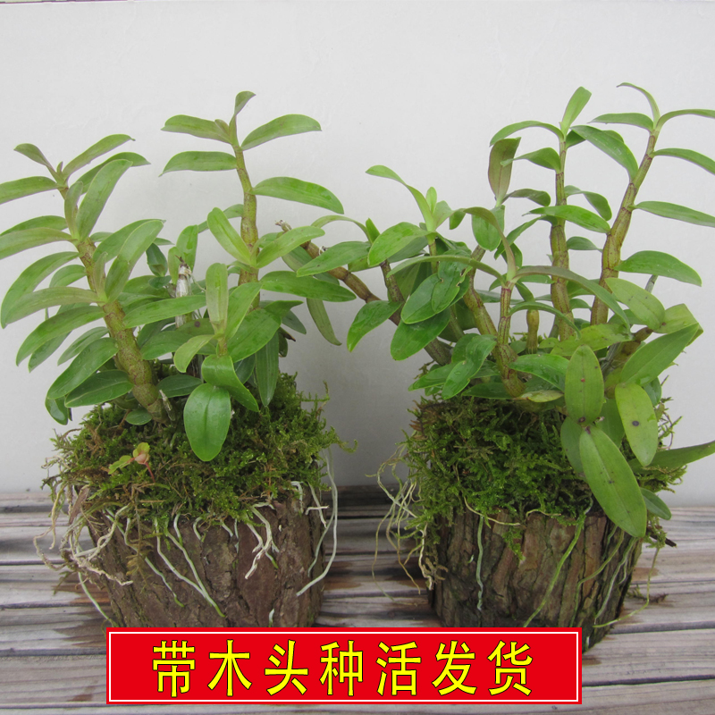 可以食用药用的新鲜雁荡山铁皮石斛苗兰木桩盆栽盆景带木头发货