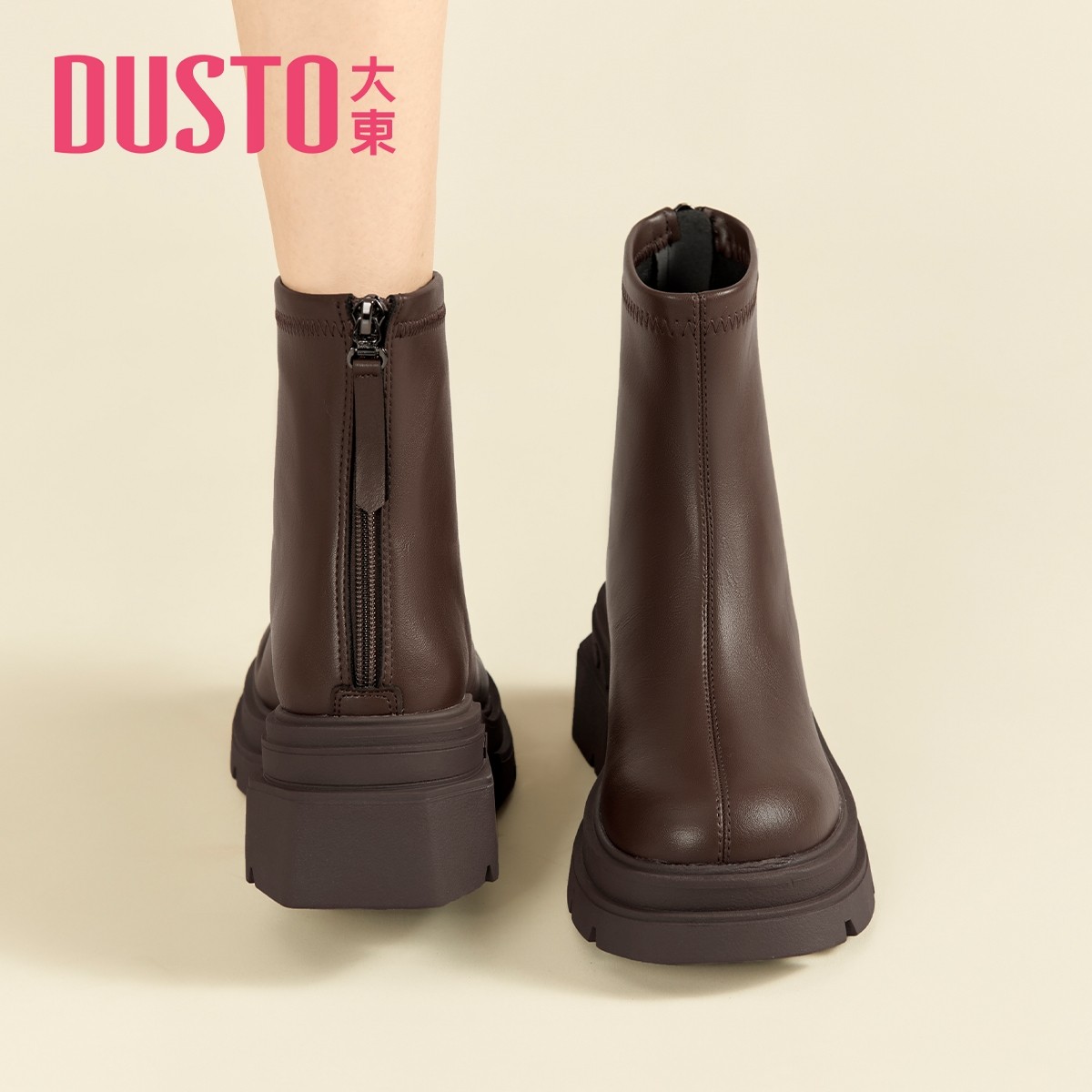 大东官方正品黑色厚底短靴