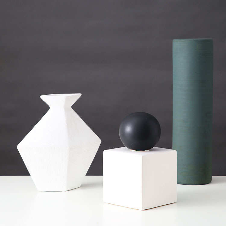 现代简约粗陶瓷花瓶 创意时尚插花干花花器 客厅餐桌家居摆件