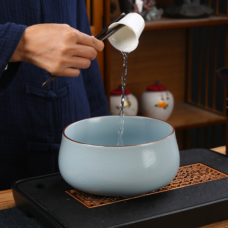 开片汝窑茶洗大号家用陶瓷功夫茶具中式复古茶道配件汝瓷杯洗盆缸