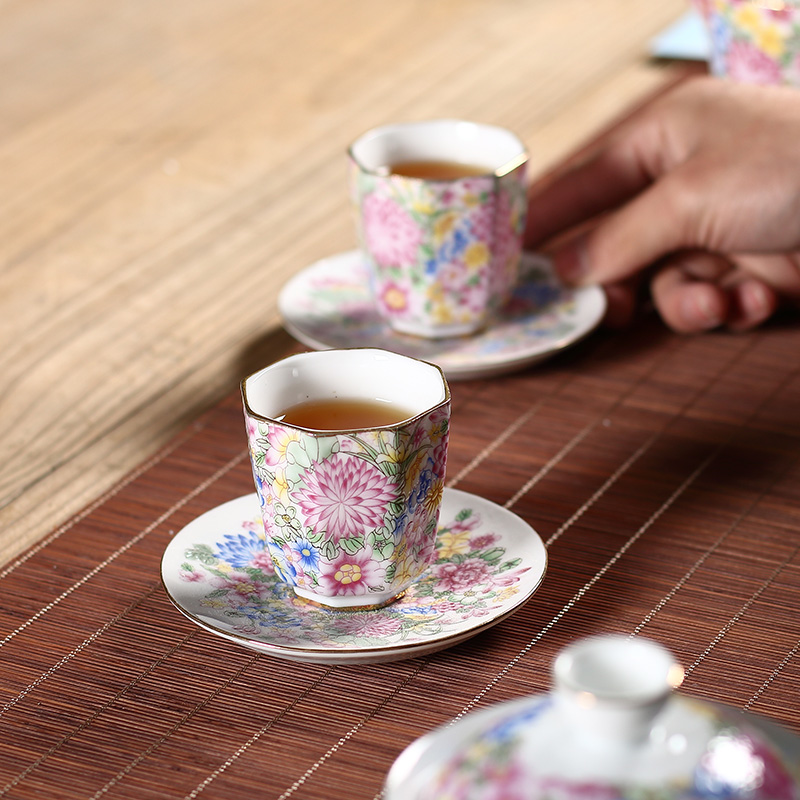 珐琅彩主人杯陶瓷功夫茶杯扒花品茗杯万花八角杯粉彩单杯专用高档