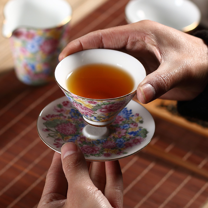 一方茗器宫廷风珐琅粉彩陶瓷茶杯