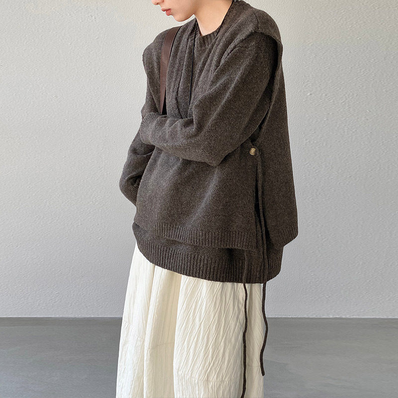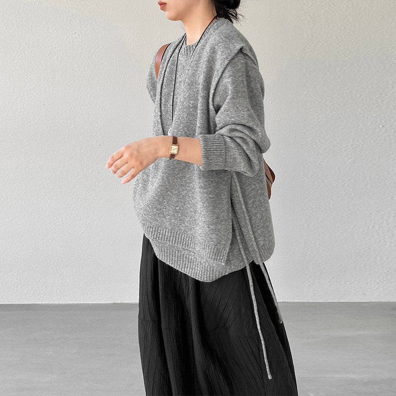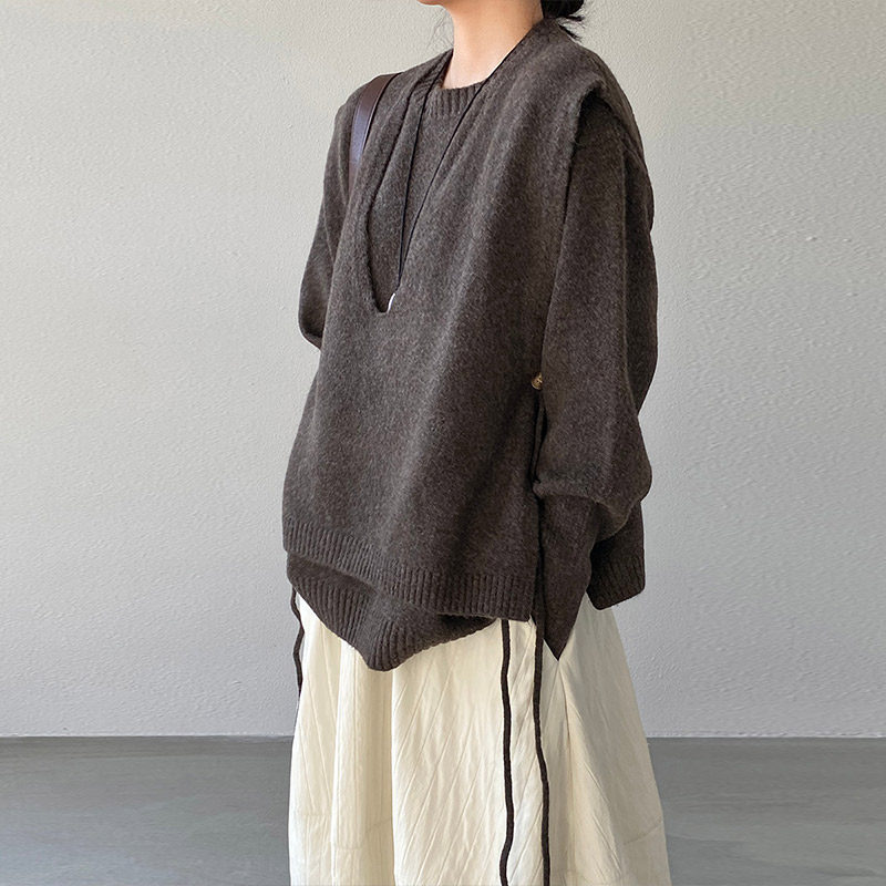 松弛感两件套装叠穿马甲针织毛衣