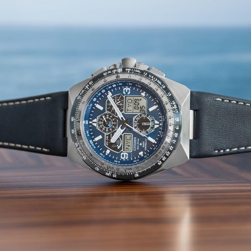 Citizen西铁城手表蓝盘蓝皮原子表计时男表防磁防水腕表