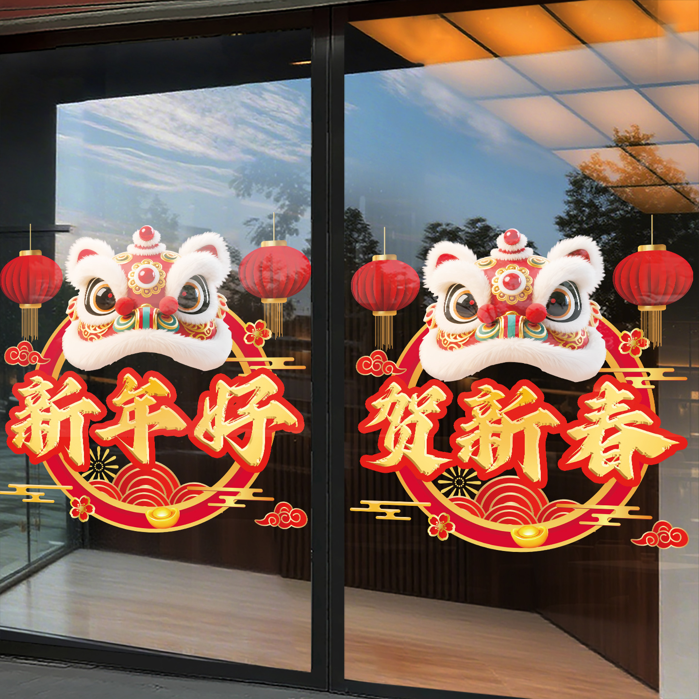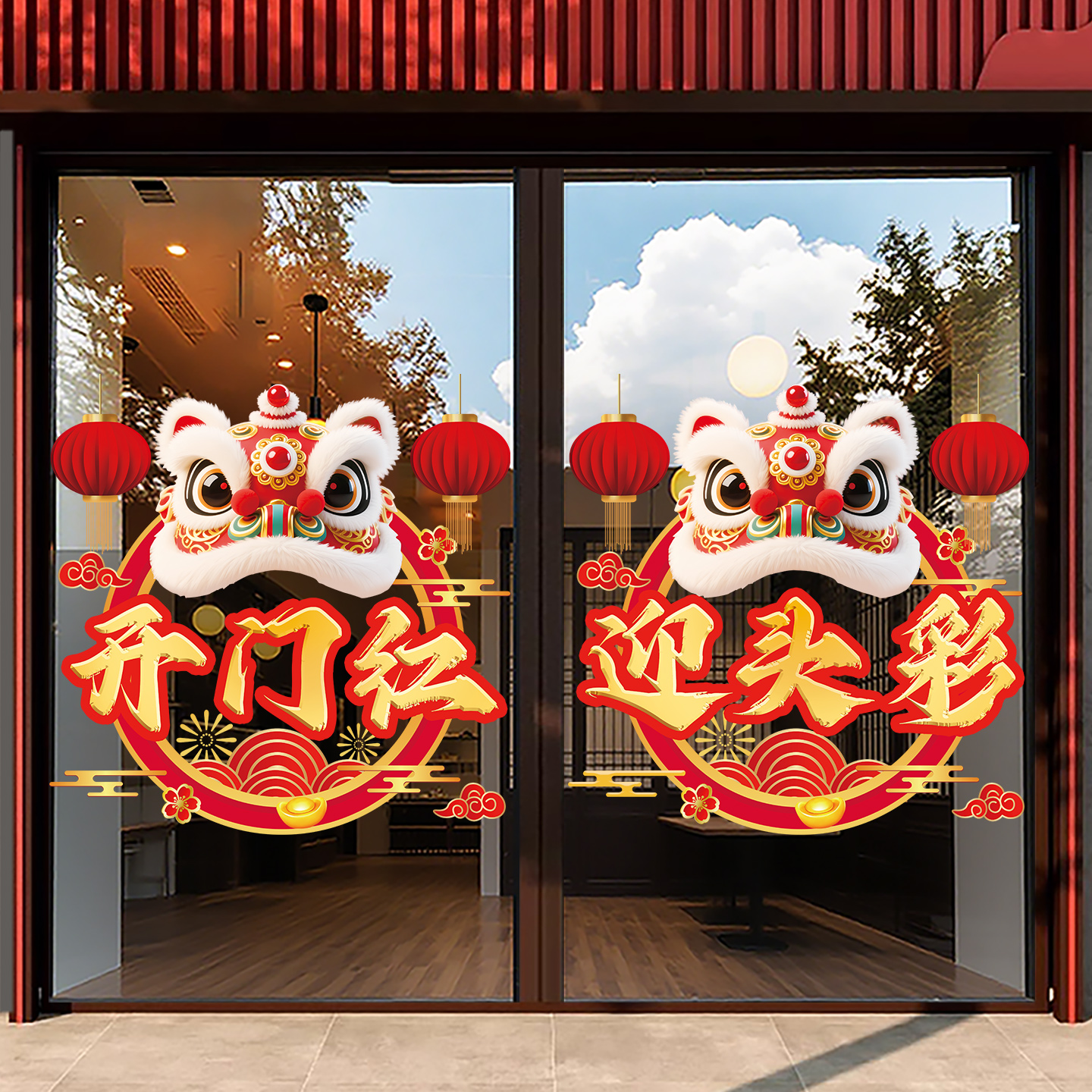 2026马年开门红新年元旦装饰玻璃门贴纸静电贴店铺橱窗贴窗花贴