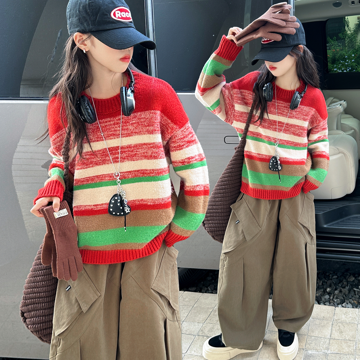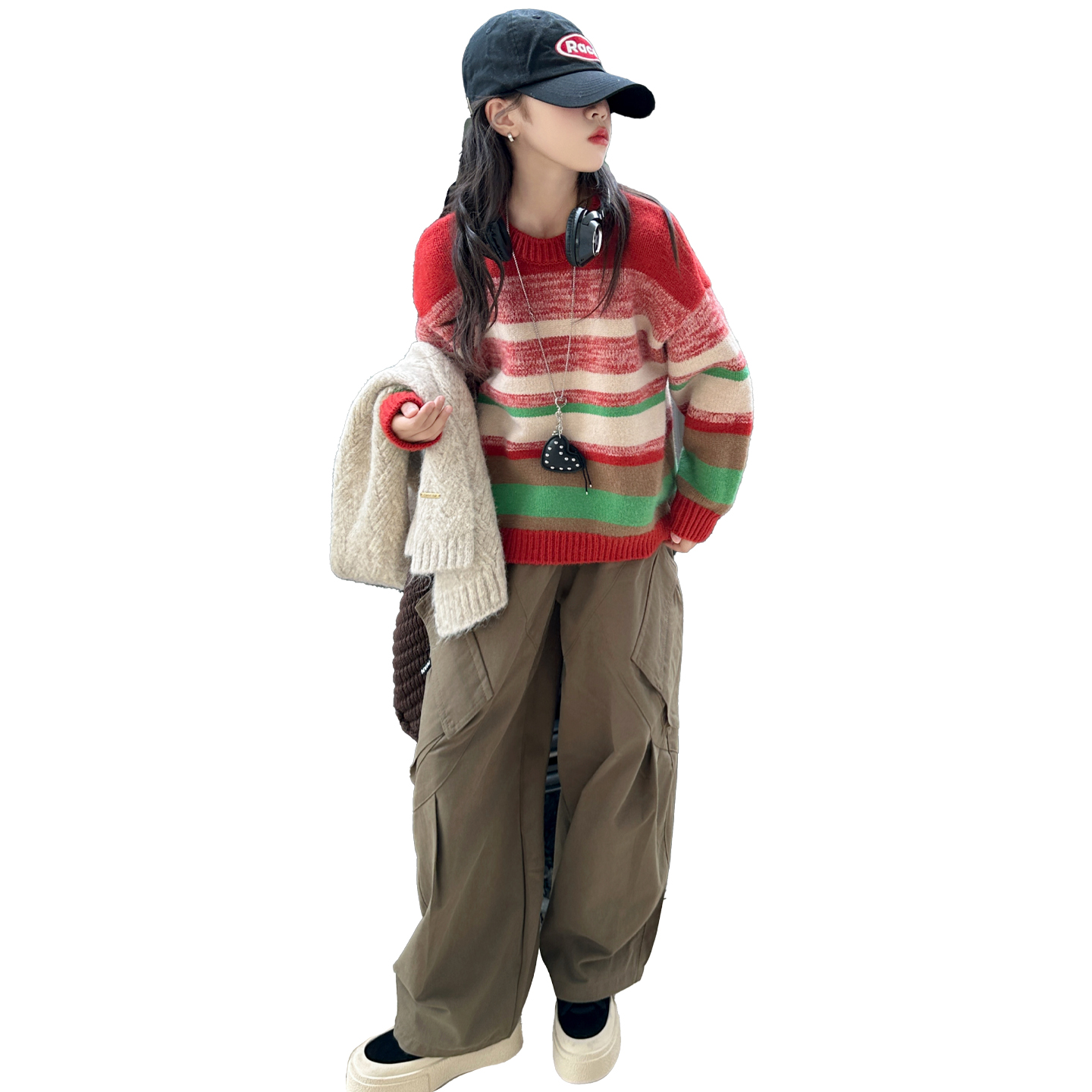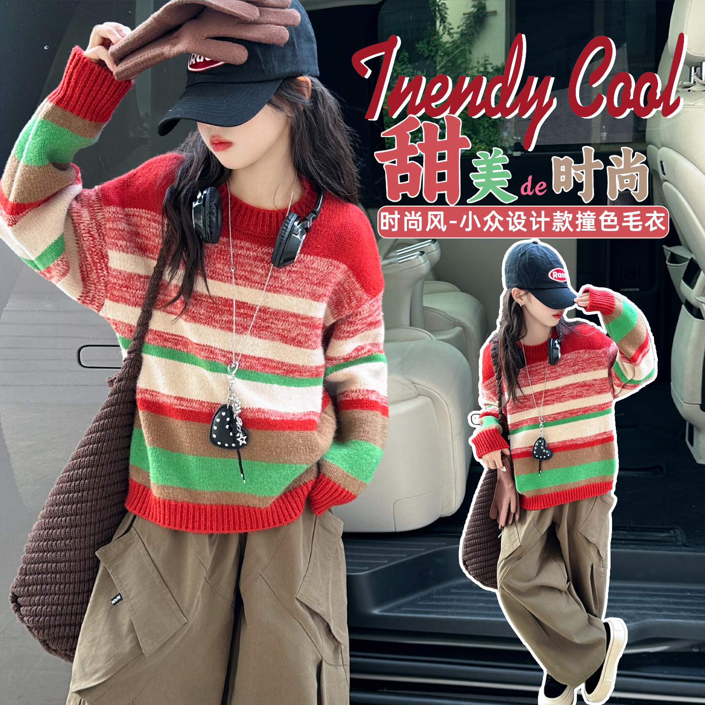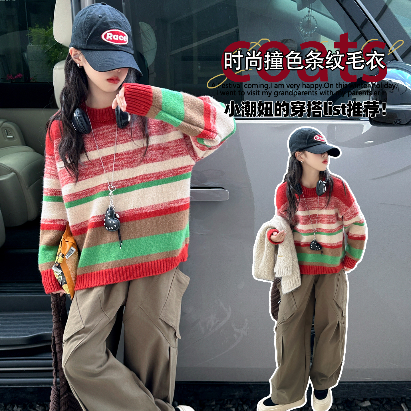 女童毛衣2025新款春秋儿童洋气时髦中大童韩版加厚保暖针织衫上衣