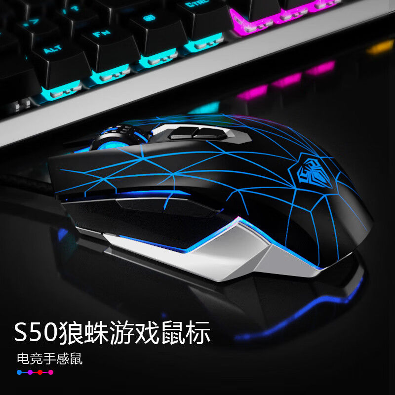 狼蛛S50有线游戏电竞机械人体工学鼠标宏编程笔记本办公FPS专用款