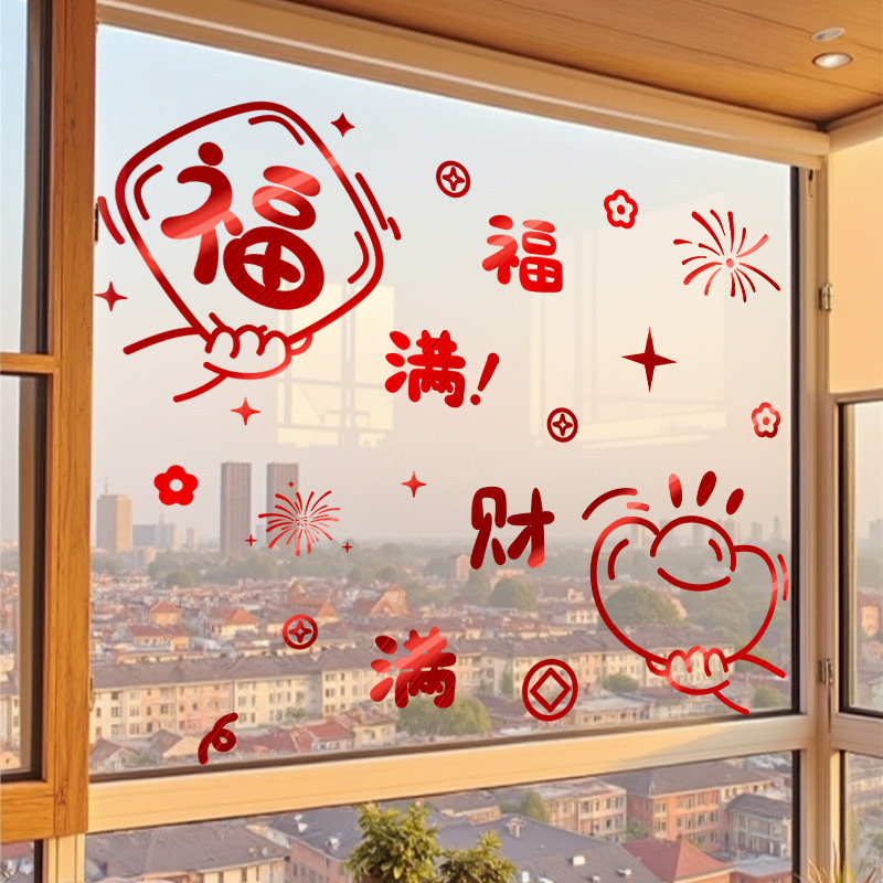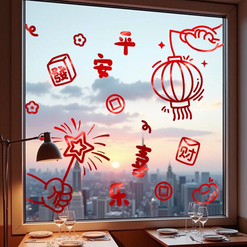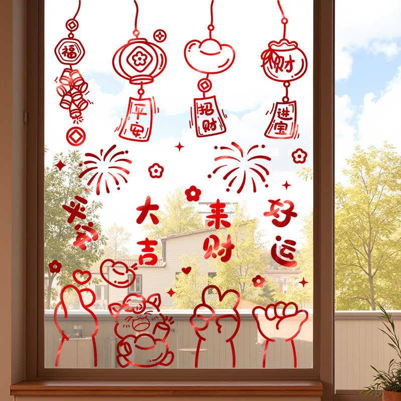 高档2026新年装饰静电贴玻璃窗花