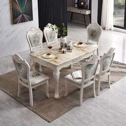 欧式大理石餐桌椅组合餐厅成套家具桌子小户型餐桌长方形餐桌家用