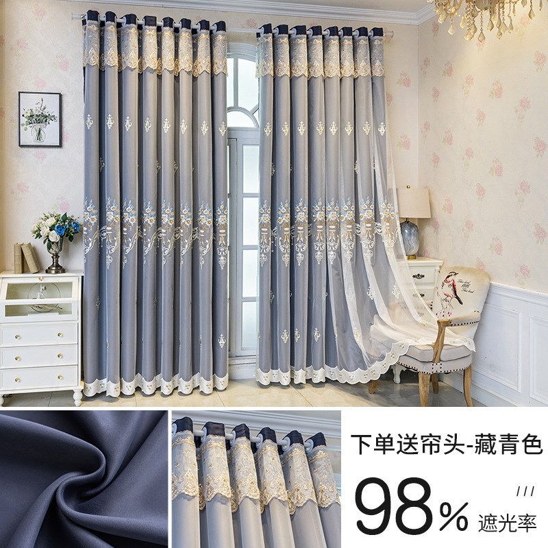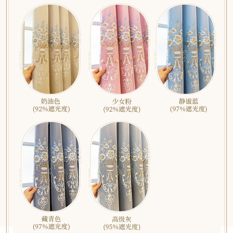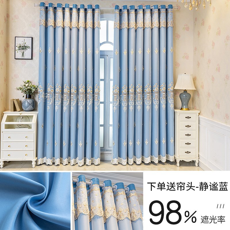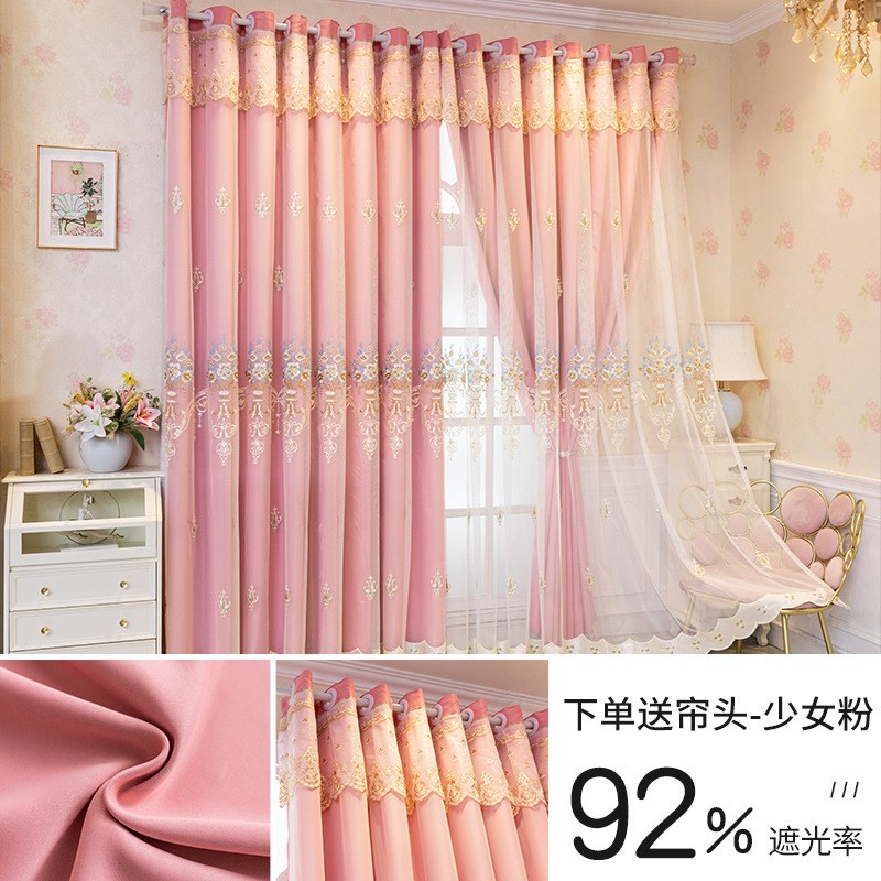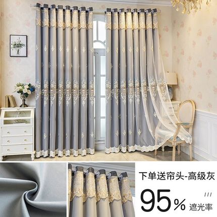 简欧全遮光窗帘成品卧室新款双层绣花纱布一体客厅隔热防晒遮光布