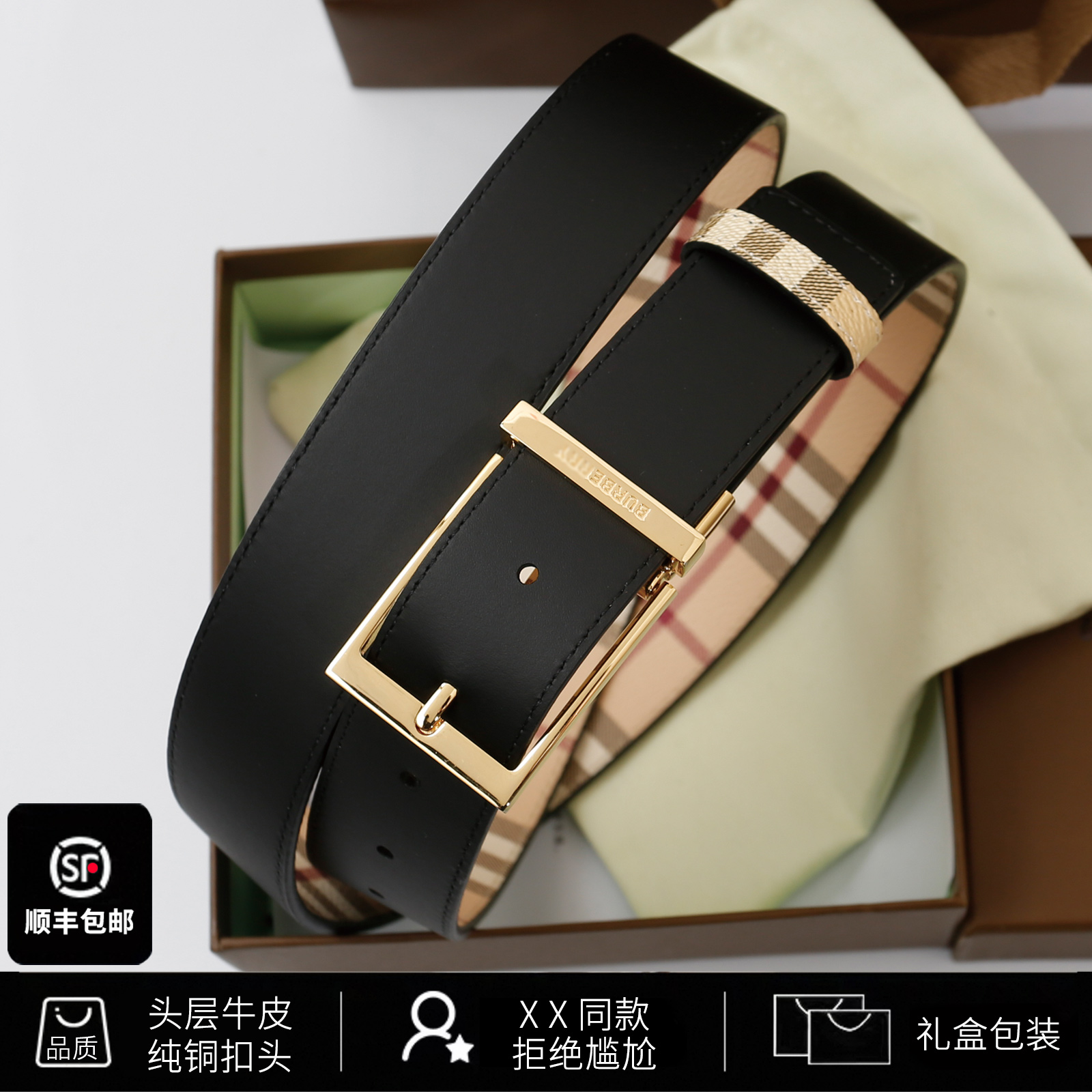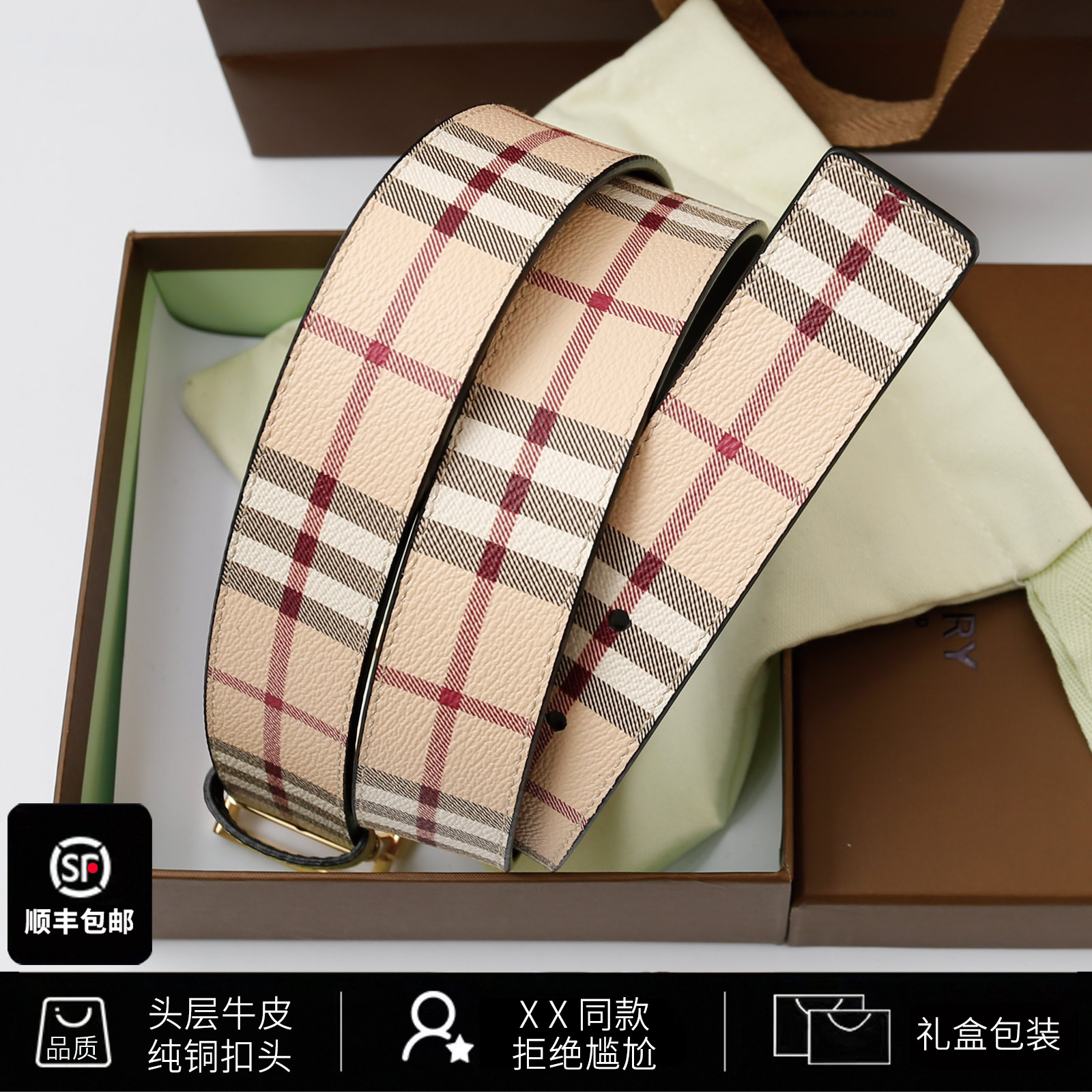 皮带男士真皮头层牛皮实心纯铜针扣经典格纹腰带百搭休闲女款裤带