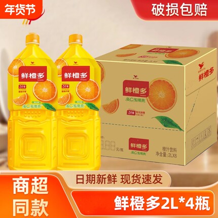 一鲜橙多2L大瓶装家庭聚会聚餐整箱果汁新鲜橙汁维C饮品果味饮料
