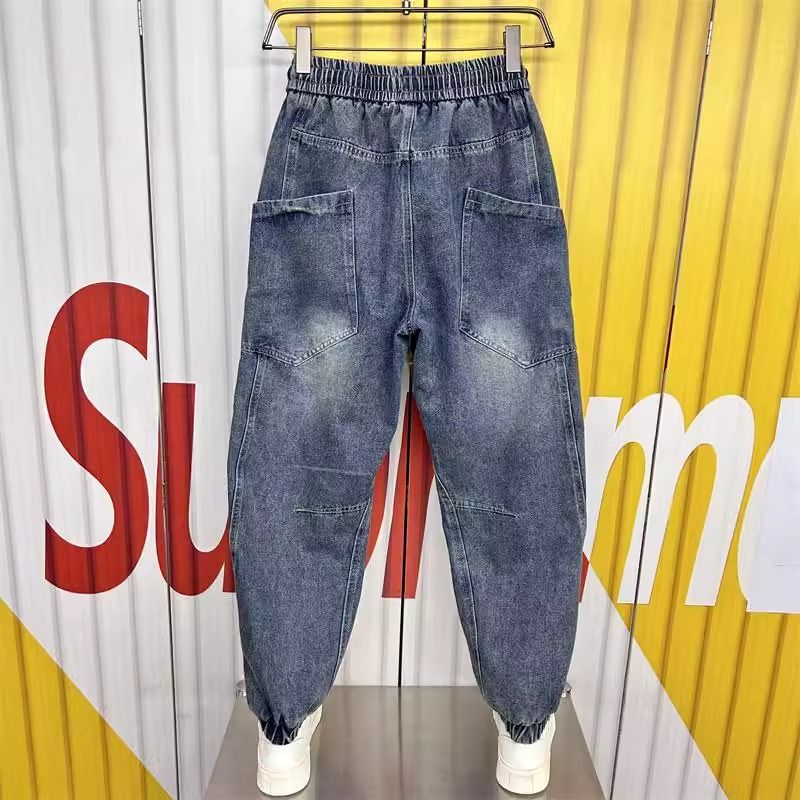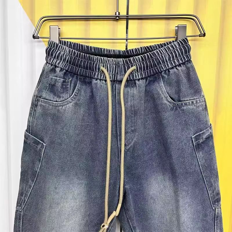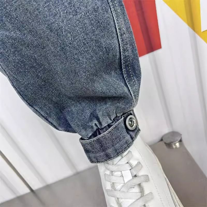 青年水洗复古潮流长裤秋冬束脚裤痞帅牛仔裤男士多口袋拼接哈伦裤