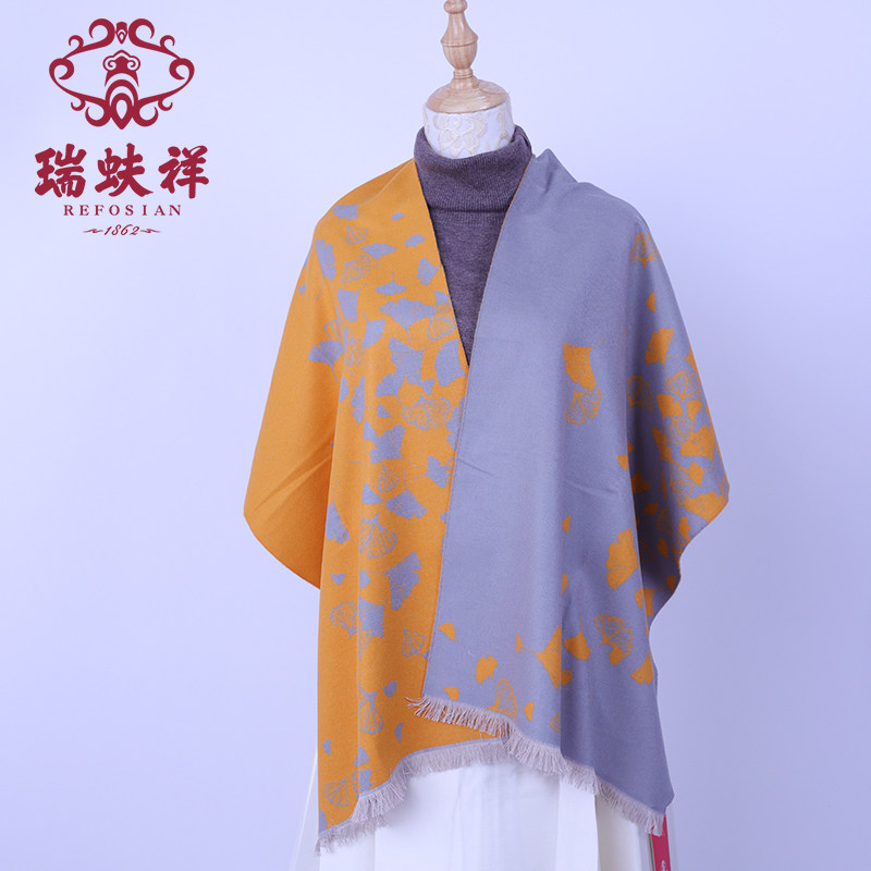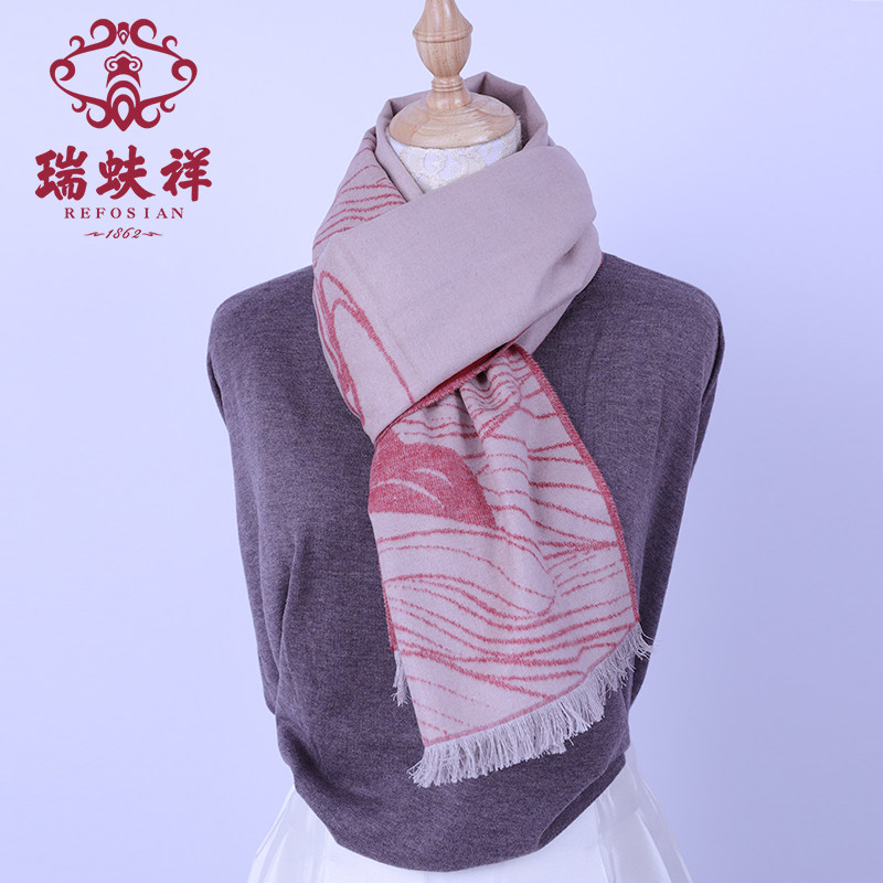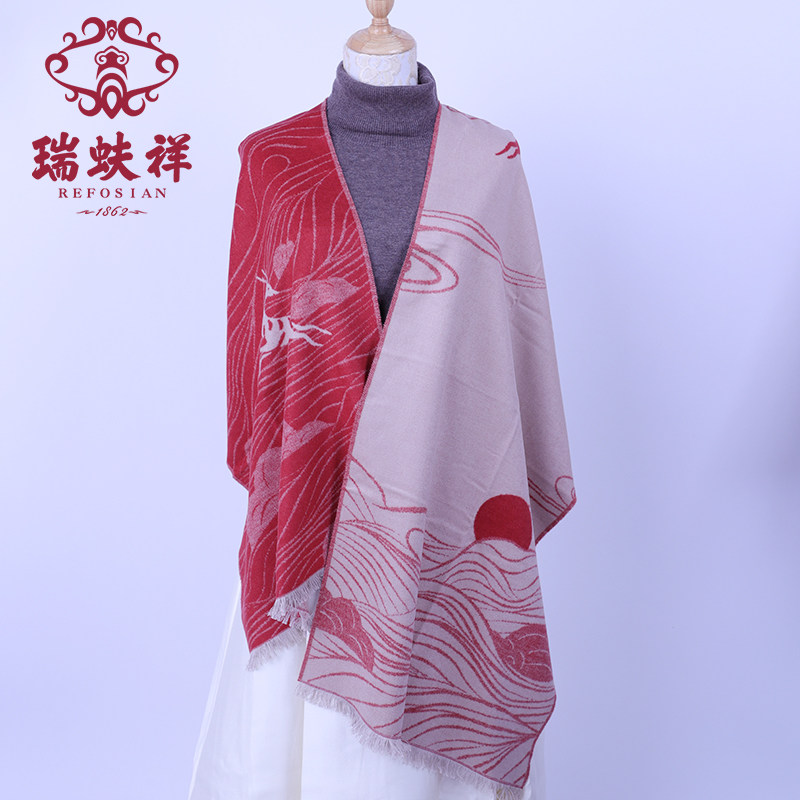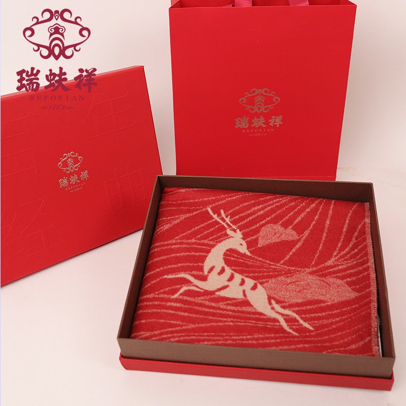 瑞蚨祥真丝围巾中国风九色鹿真丝拉绒披肩秋冬保暖围脖礼盒装