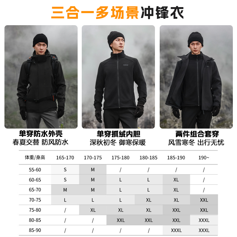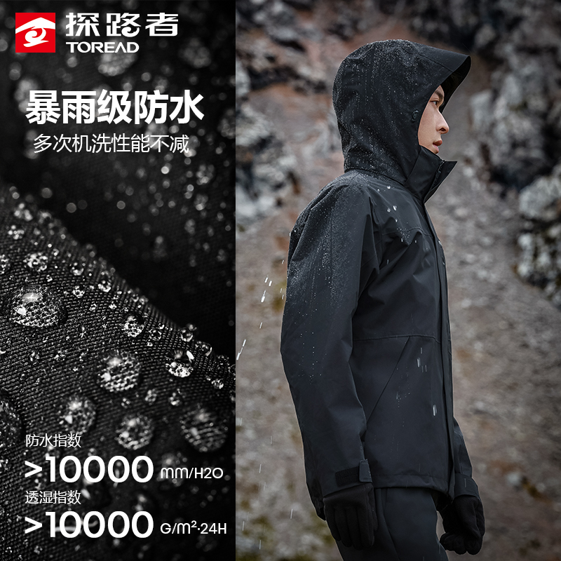探路者防雨保暖三合一冲锋衣男款
