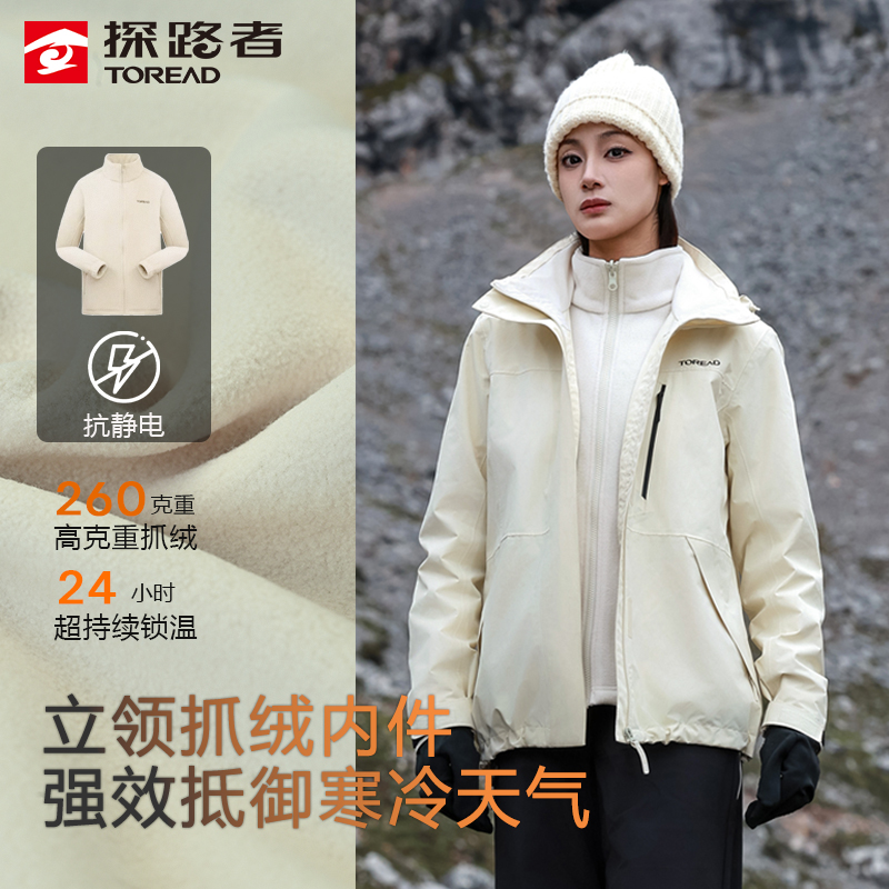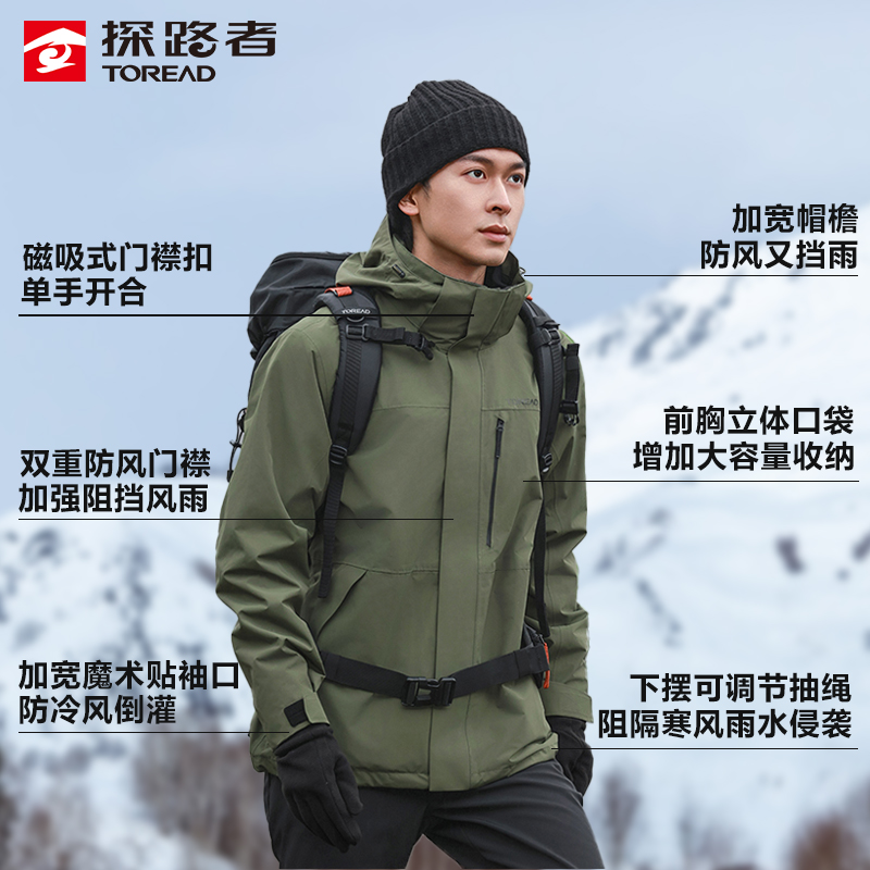探路者冲锋衣男三合一冬季加绒加厚新款防水登山服可拆卸外套女