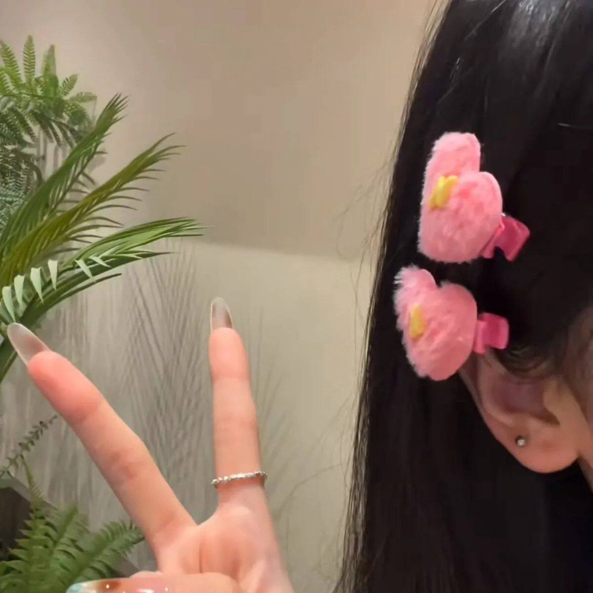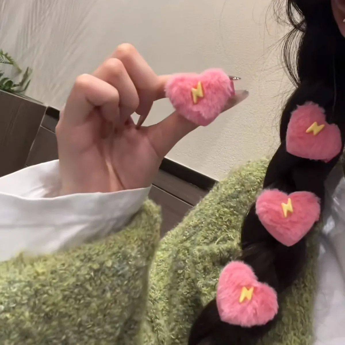汪苏泷十万伏特周边物料曼城粉色爱心毛绒发夹甜美少女刘海发夹女