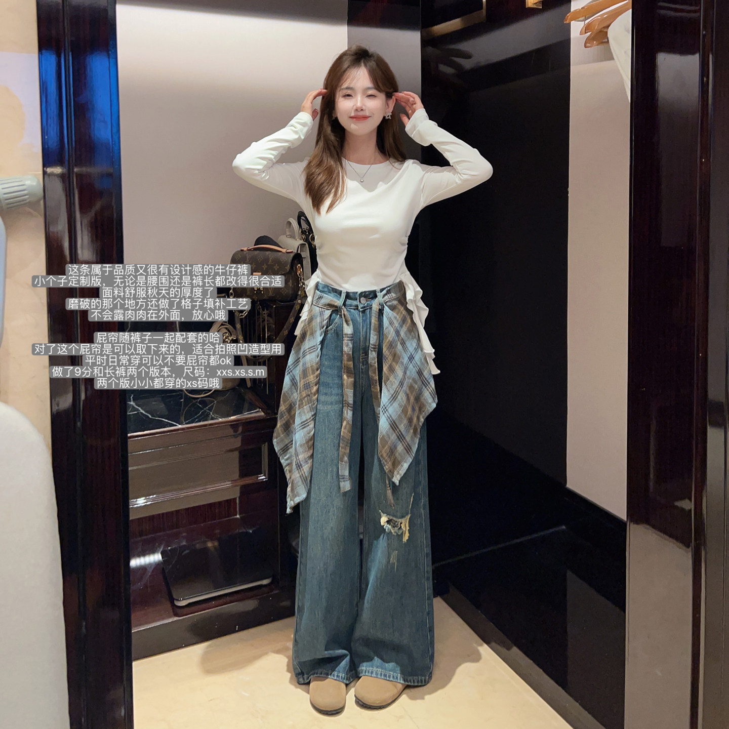 小小家 小个子小码时髦牛仔裤显高瘦直筒阔腿长款裤子屁帘可拆卸