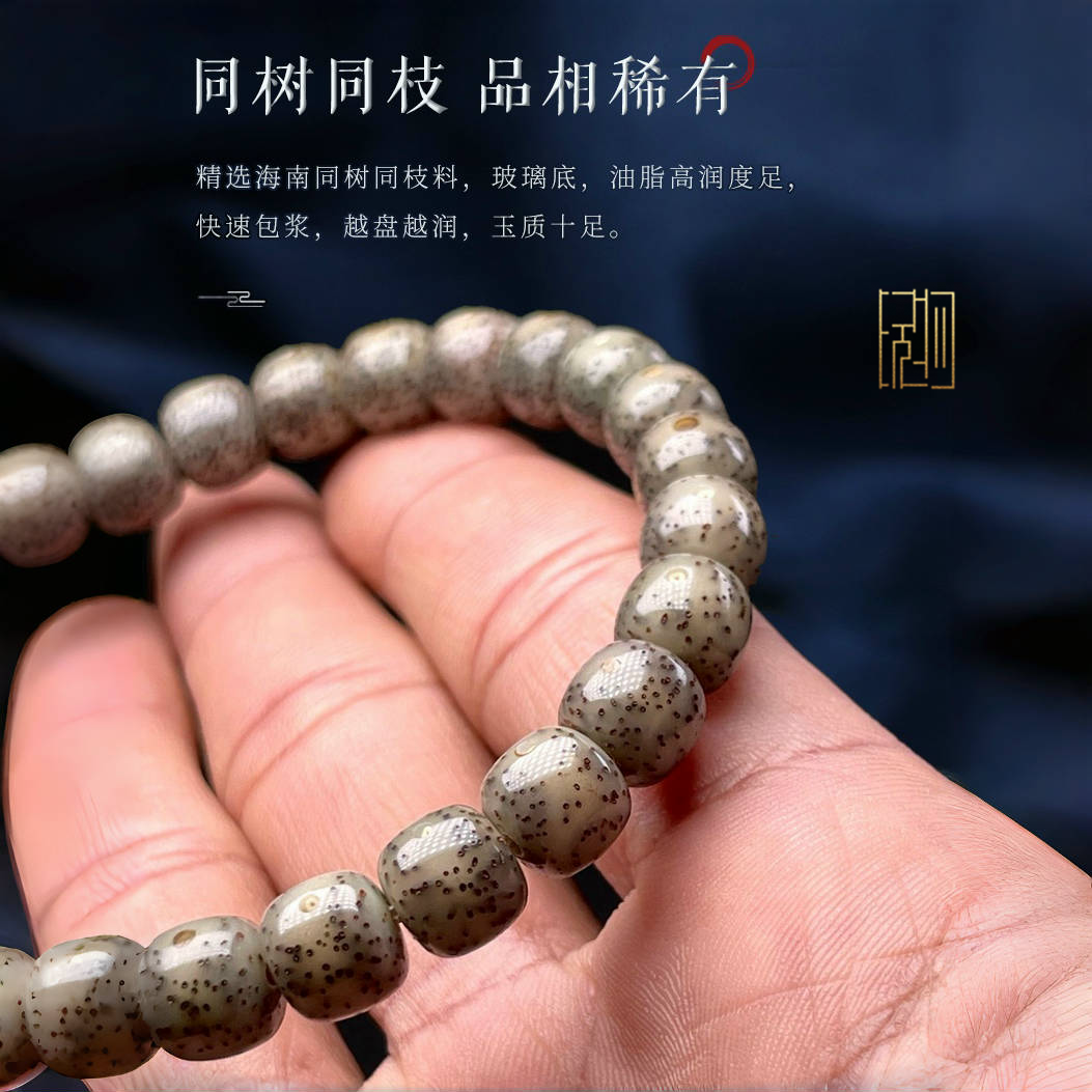 海南原生态星月菩提子108颗石玉料绿幽灵玉化籽佛珠男女手串项链