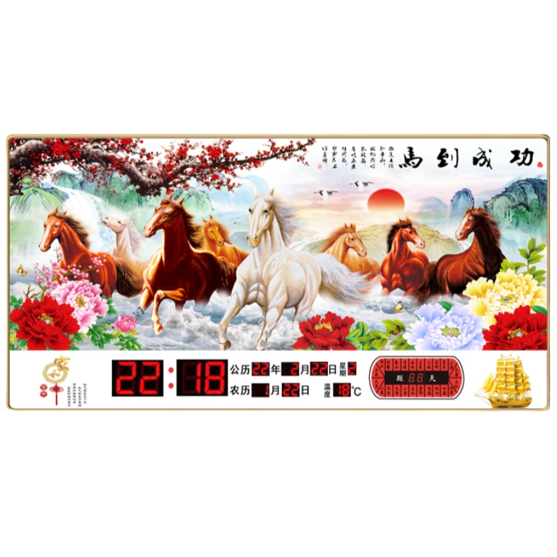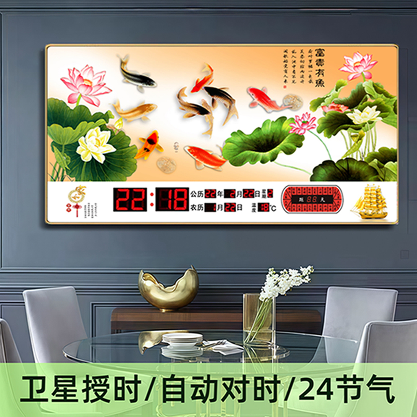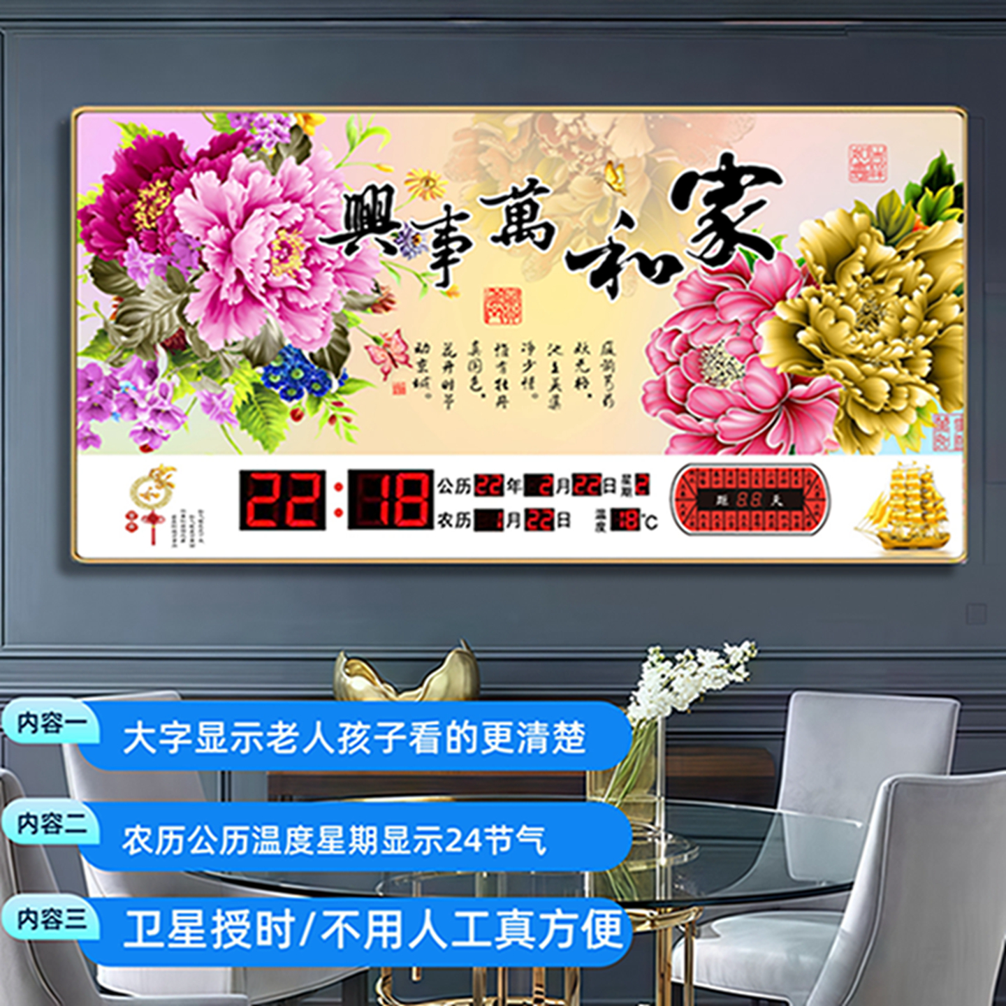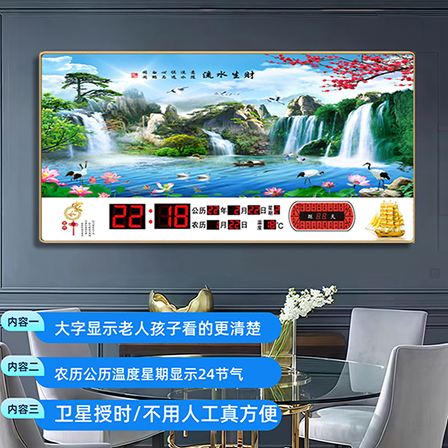 卫星万年历电子钟2025新款家用客厅壁挂墙钟创意风景数码日历钟表