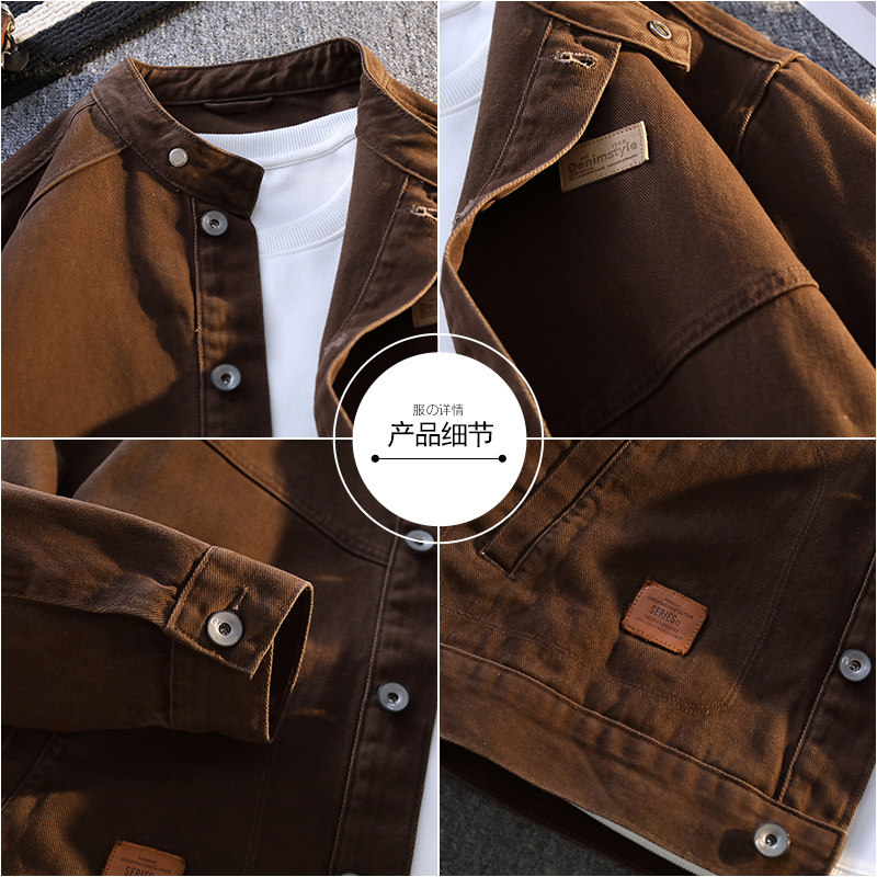 纯棉牛仔外套男春秋款学生夹克潮牌帅气青少年美式复古工装褂子男