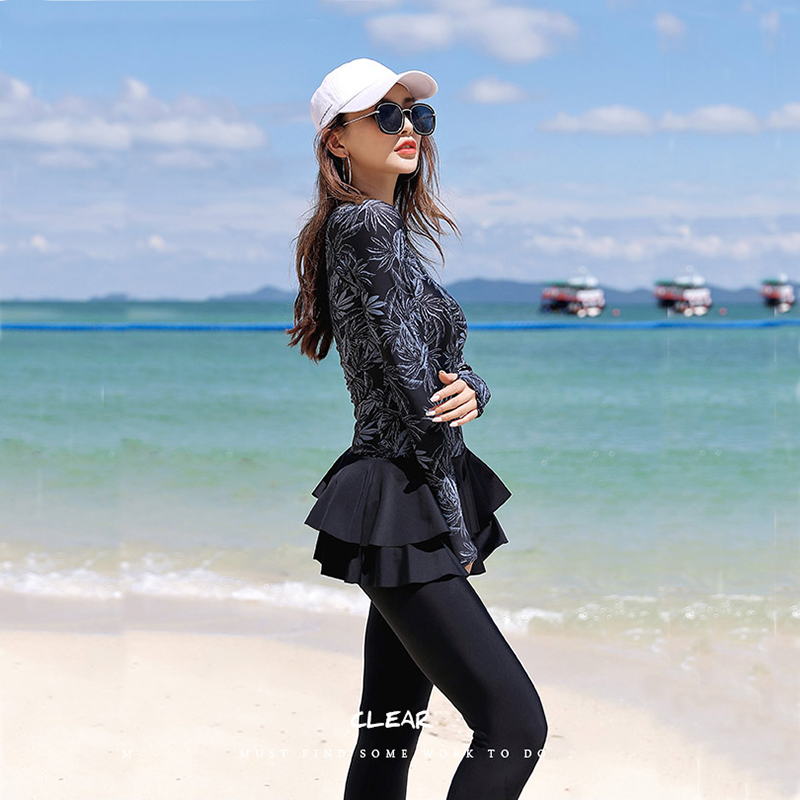 保守速干分体裙式全身长袖长裤泰国海边沙滩防晒男女运动游泳衣服