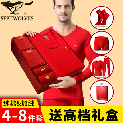 七匹狼高档礼盒本命年红保暖内衣