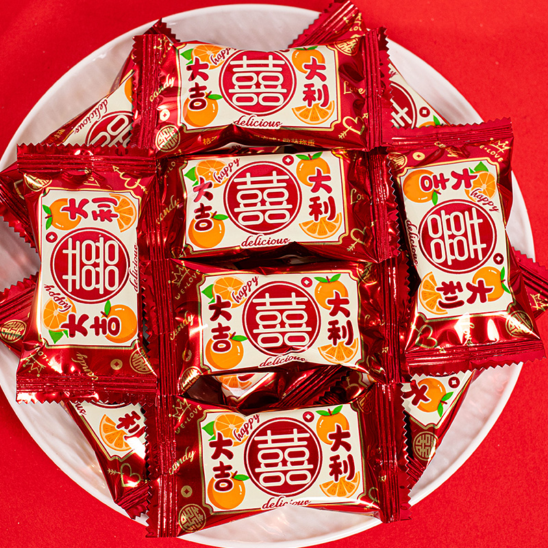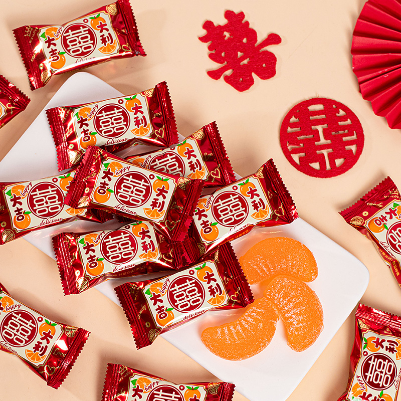 【双喜桔子软糖】橘子味水果软糖结婚喜糖伴手礼年货喜庆糖果批发