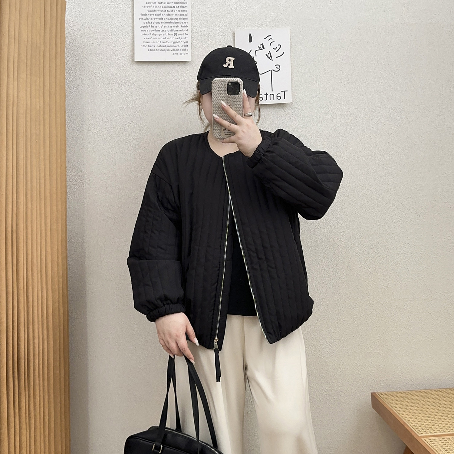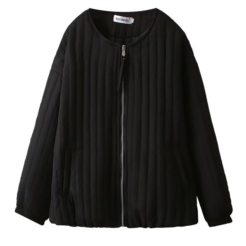 宛宛大码女装秋冬新款轻薄夹棉外套胖mm休闲翻领小棉衣宽松夹克潮