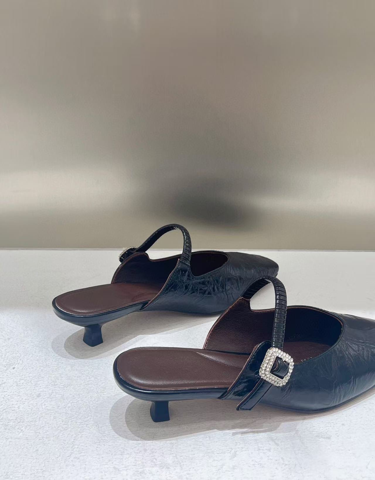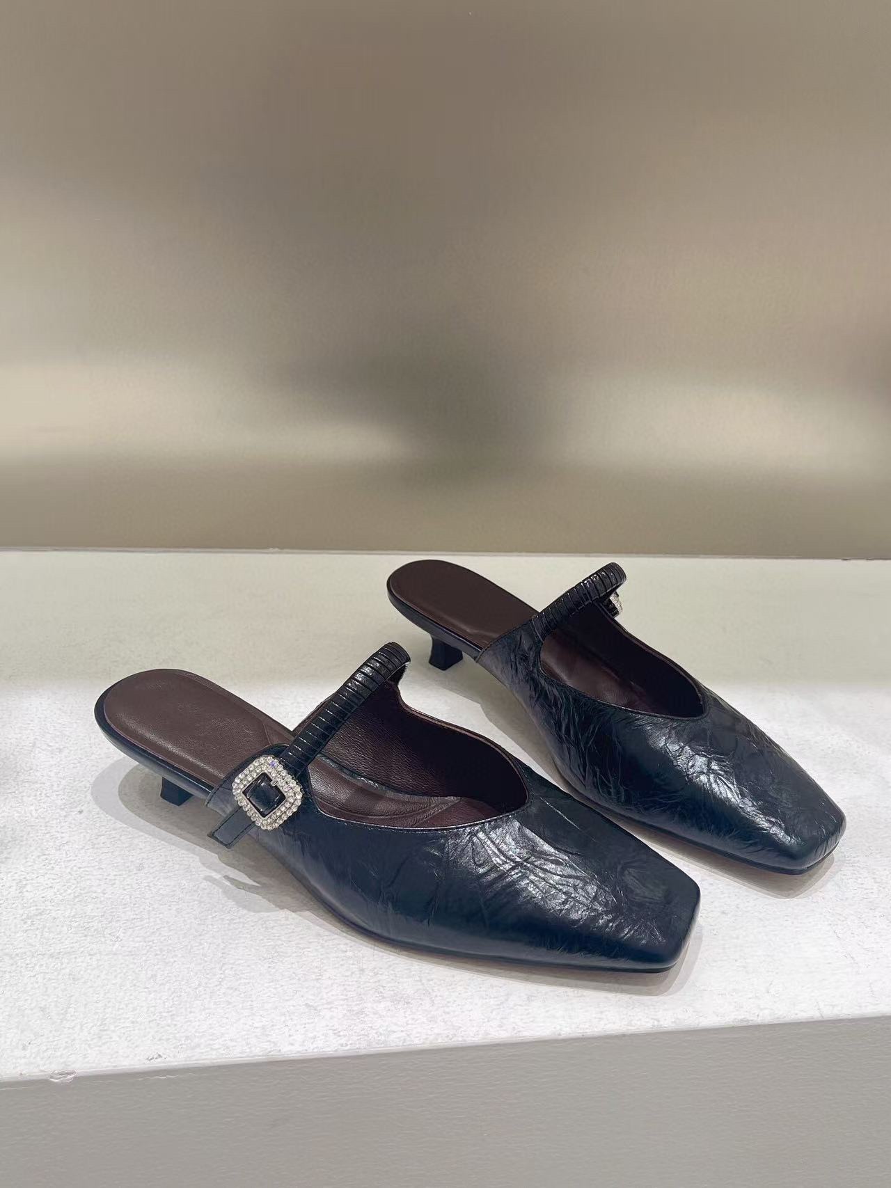 欧洲站2025春新款真皮一字带包头凉拖鞋女法式气质穆勒鞋中跟半拖
