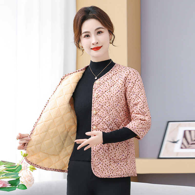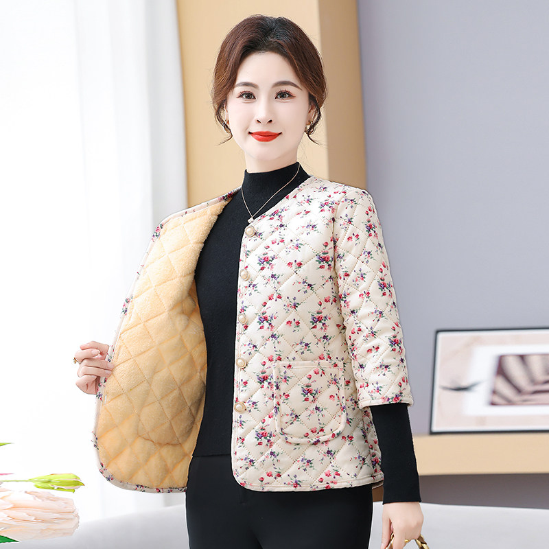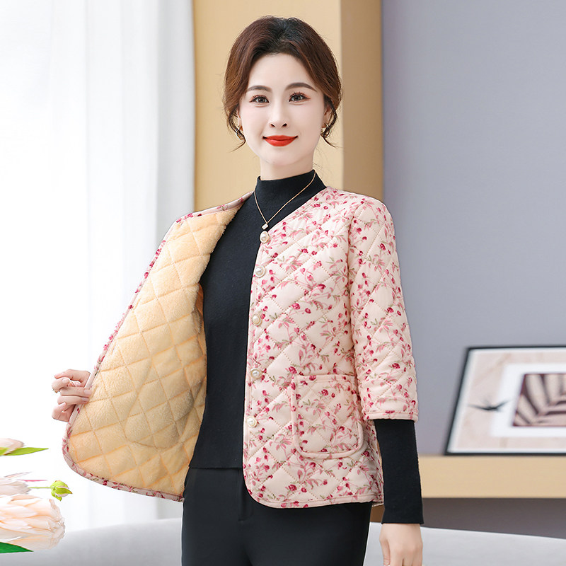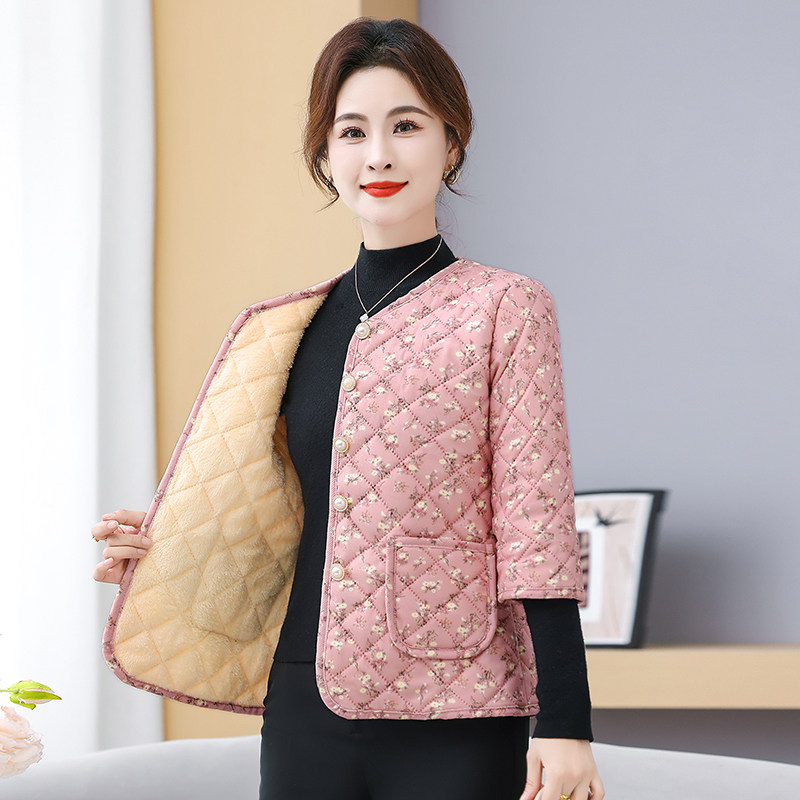 妈妈秋冬加绒七分袖棉服棉马甲中老年女装大码保暖中袖棉衣棉马夹