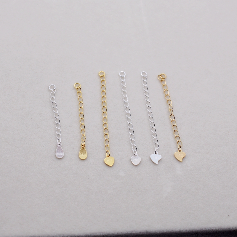 S925纯银镀金尾链加长延长链diy手工饰品串珠珍珠手链项链调节链