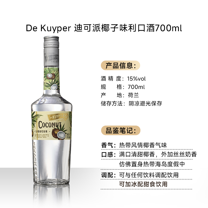 迪可派椰子味利口酒力娇酒鸡尾调制基酒荷兰原装进口洋酒