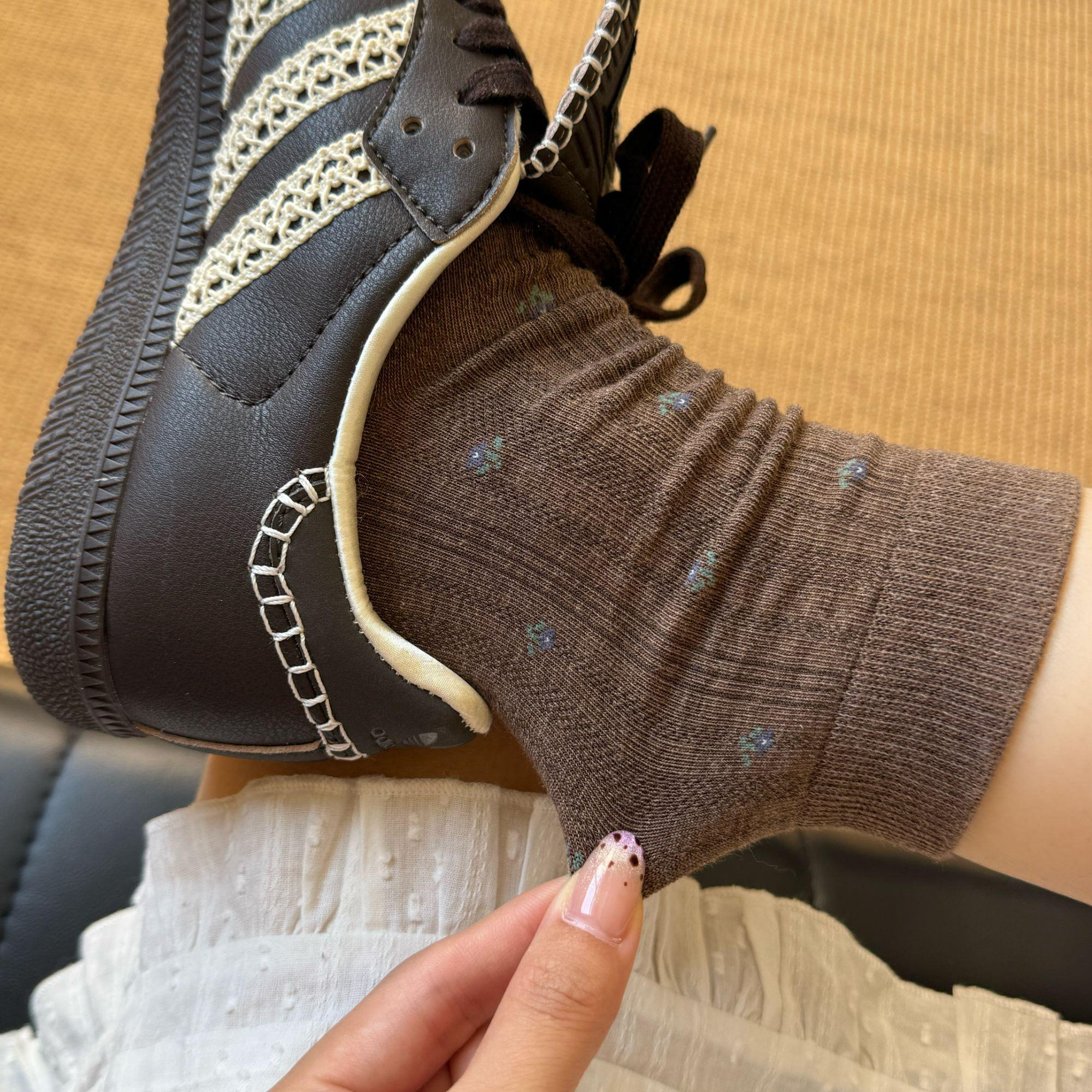 秋日温柔小碎花棉袜女中筒袜miu系清冷风无骨可露丽风百搭堆堆袜