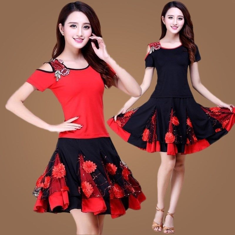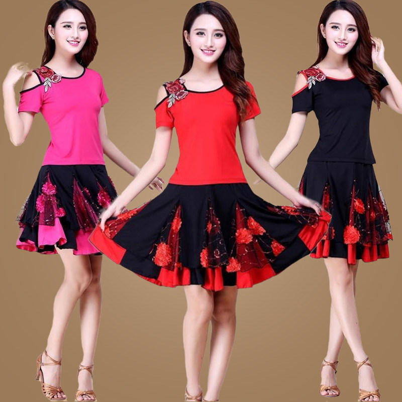 短袖广场舞服装套装纱裙夏季新款舞蹈演出服成人女跳舞衣服拉丁舞