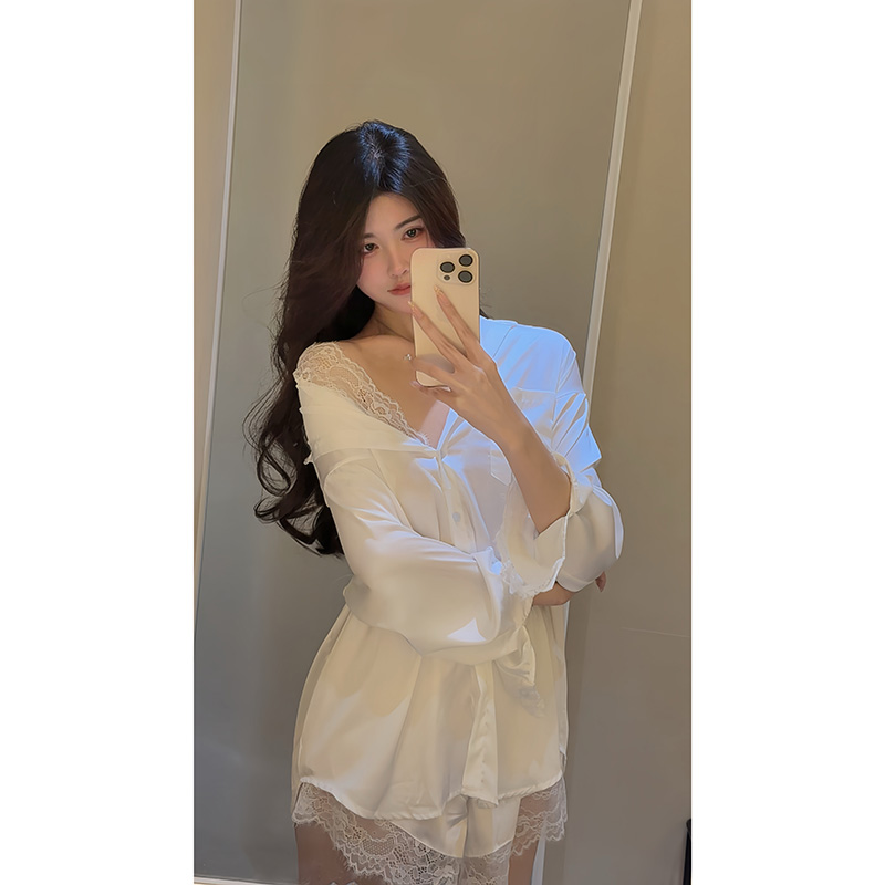 【隐衫之欲】男友风衬衫裙性感纯欲睡衣女2025新款蕾丝家居服套装