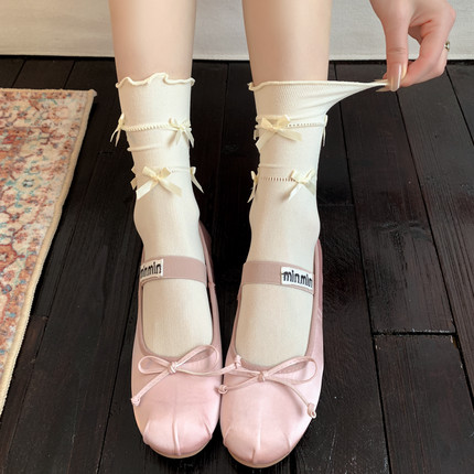 芭蕾风蕾丝袜子女中筒夏季jk薄款堆堆袜miu系长筒白色配玛丽珍鞋
