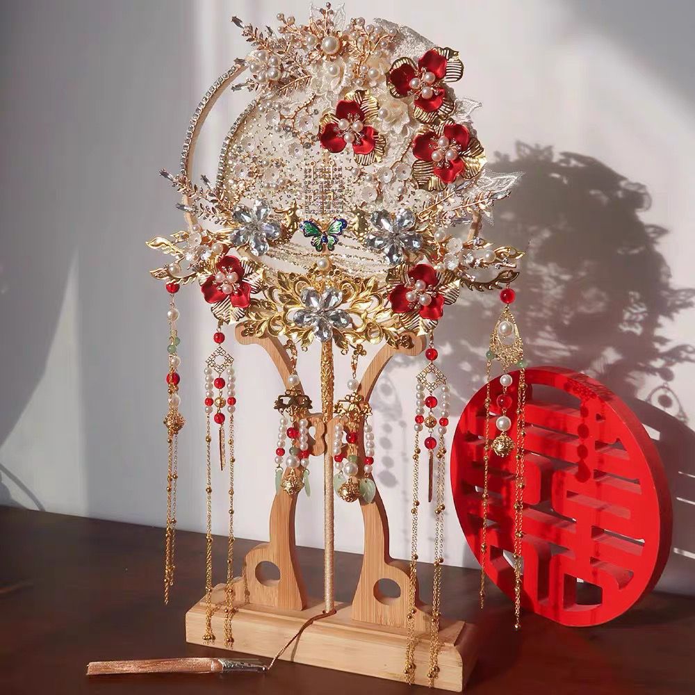 蚕丝扇团扇结婚新娘diy材料手工喜扇秀禾服婚礼中式高级出嫁 成品