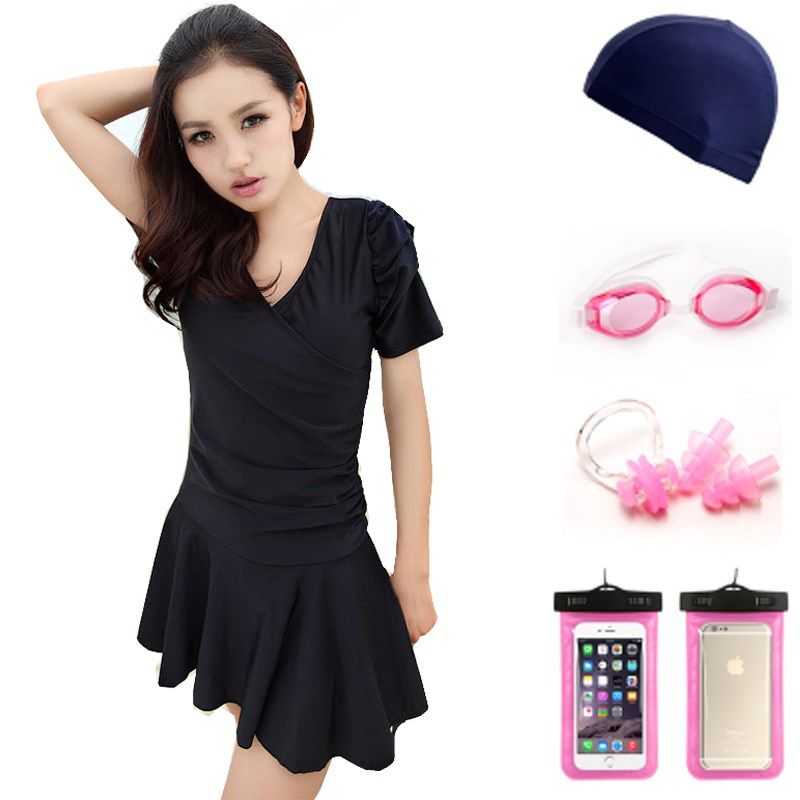 泳衣女2024新款爆款裙式连身遮肚保守大尺码黑色显瘦温泉游泳装