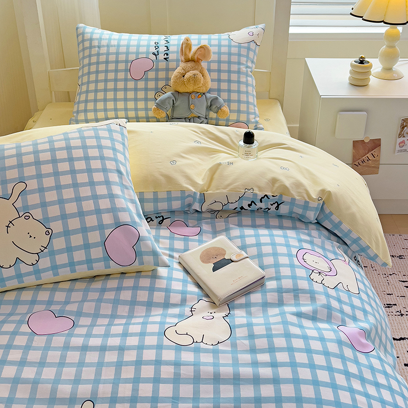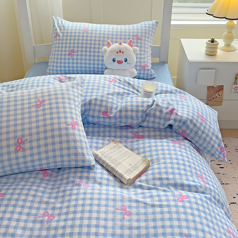 学生宿舍床上用品全棉三件套0.9/1.2m床单北欧菱格纯棉被套四件套