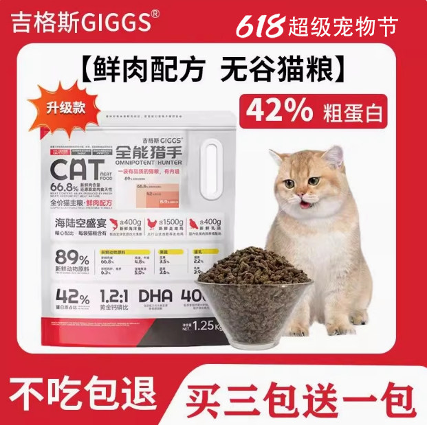 吉格斯乳鸽猫粮2.5斤成猫粮幼猫粮全价无谷5斤装猫粮