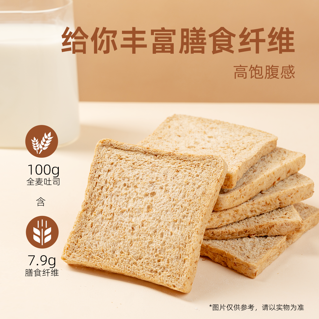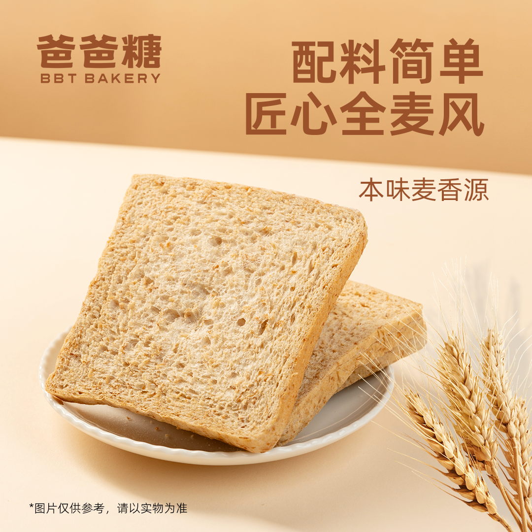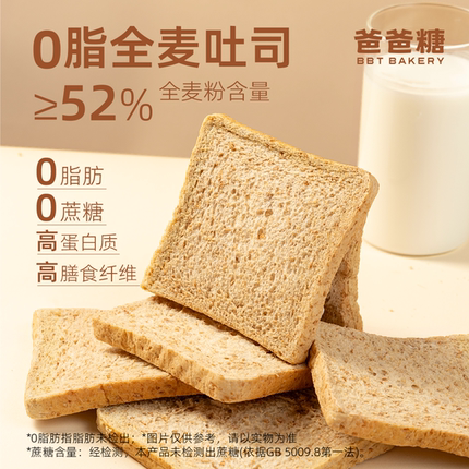 爸爸糖0脂肪全麦面包无添加蔗糖吐司片低脂代餐粗粮饱腹整箱早餐