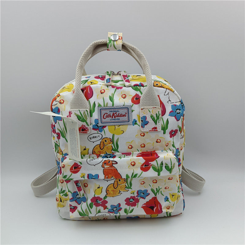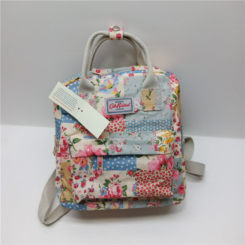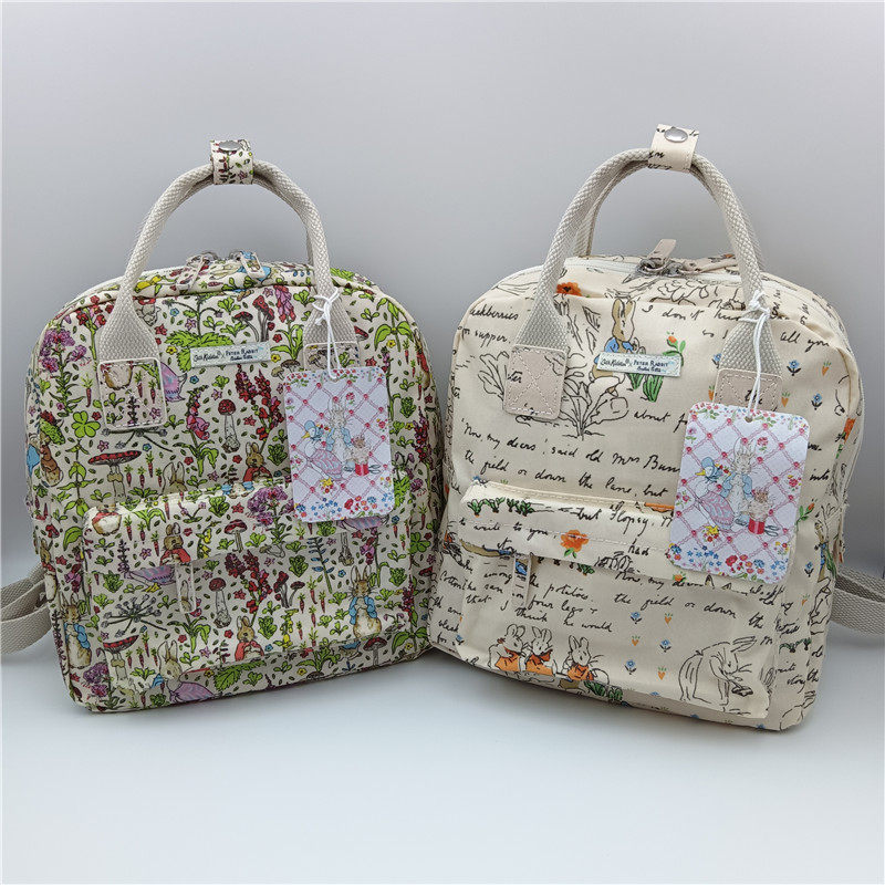 出口英国防水油布小清新少女心狗狗小鸟花朵双肩背包小书包休闲包