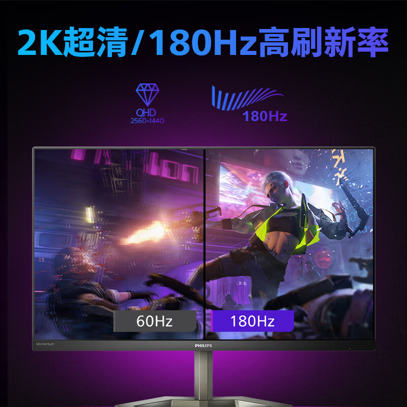 飞利浦27英寸2K180Hz电脑显示器电竞台式屏高刷原装27M1N5500ZR