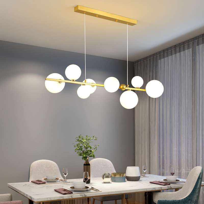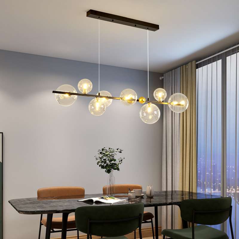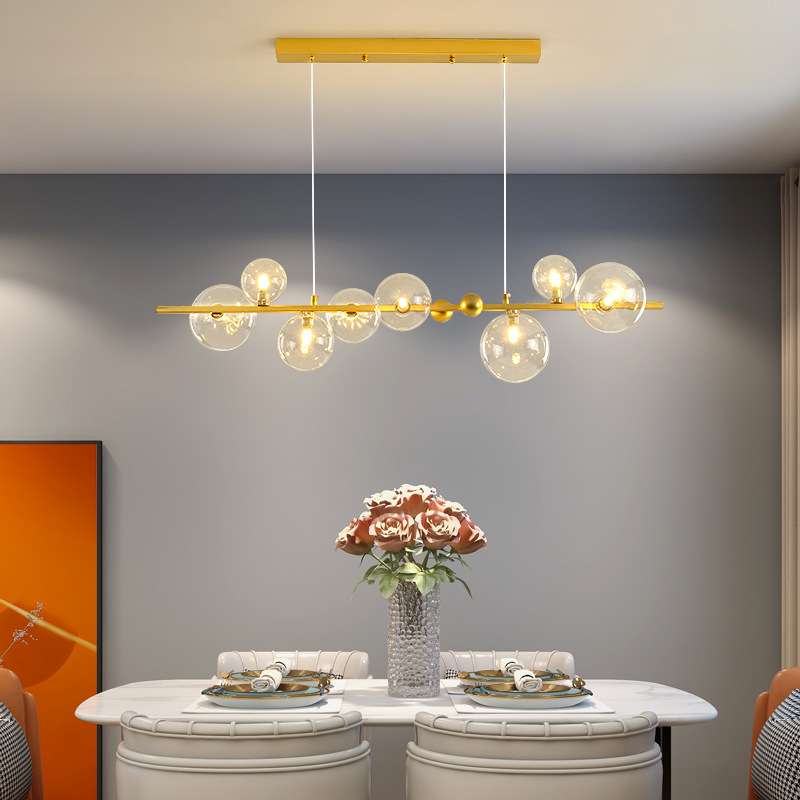 现代简约一字长条餐厅灯网红创意魔豆灯北欧餐厅吧台全光谱吊灯