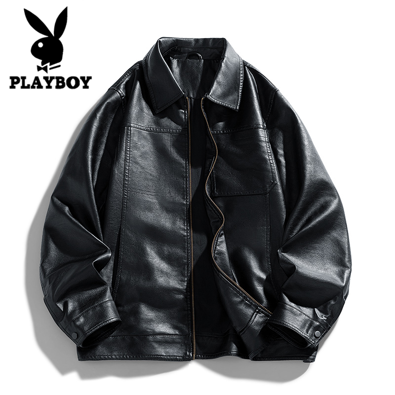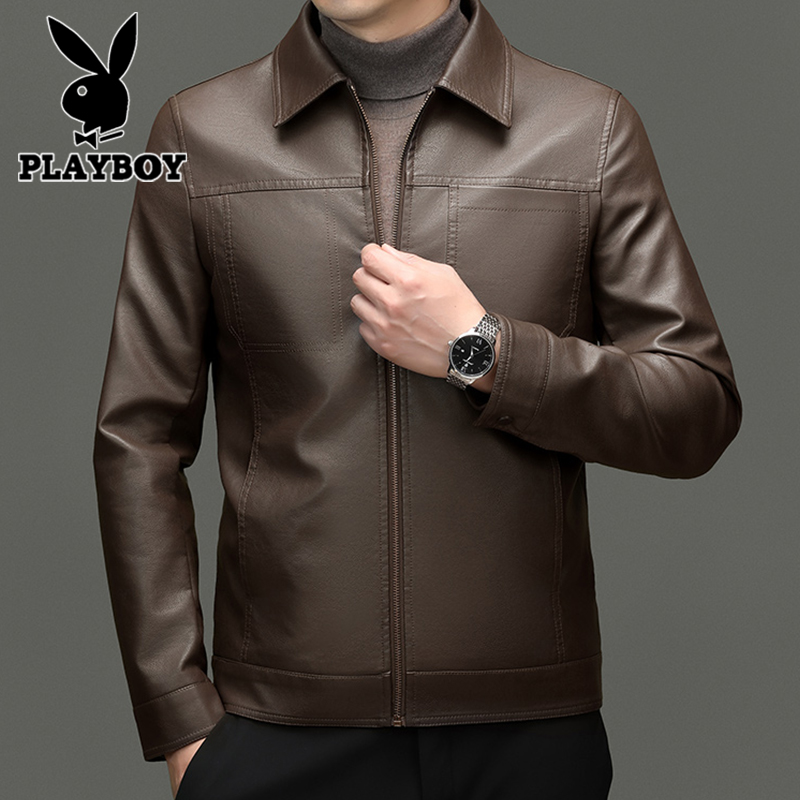 花花公子正品高端皮衣男中青年商务休闲翻领外套春秋季新款皮夹克