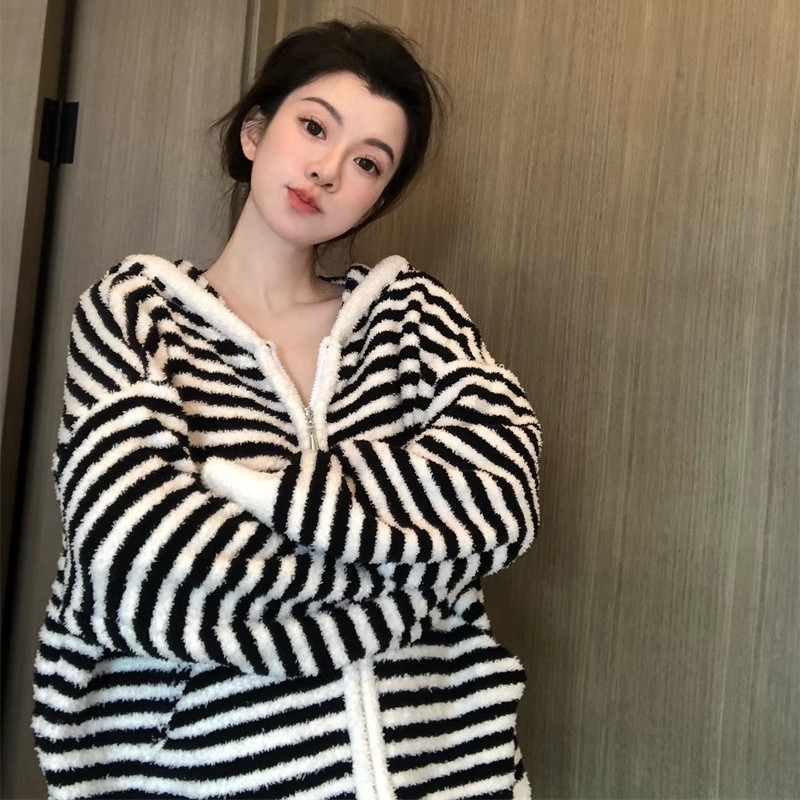 2025新款珊瑚绒睡衣秋冬立领纯色拉链款保暖套装加绒加厚可外穿女