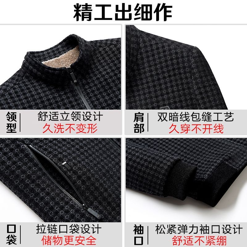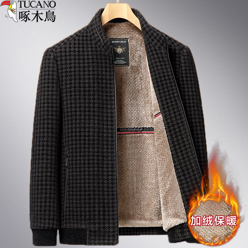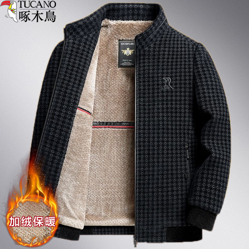 啄木鸟中年男士外套夹克衫加绒加厚款秋冬季中老年人棉衣服爸爸装
