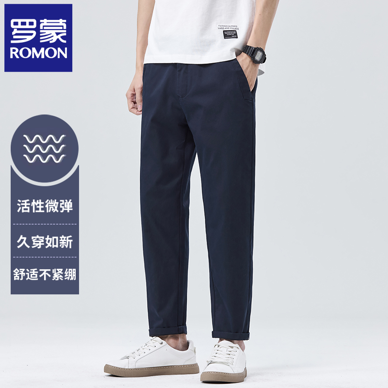 罗蒙高端潮流棉弹直筒九分休闲裤